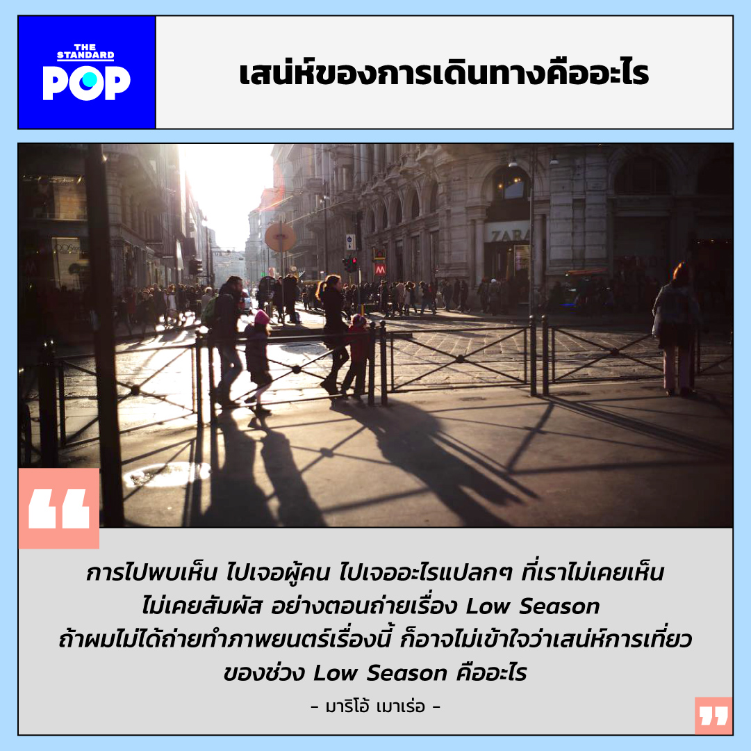 “การไปพบเห็น ไปเจอผู้คน ไปเจออะไรแปลกๆ ที่เราไม่เคยเห็น ไม่เคยสัมผัส อย่างตอนถ่ายเรื่อง Low Season ถ้าผมไม่ได้ถ่ายทำภาพยนตร์เรื่องนี้ ก็อาจไม่เข้าใจว่าเสน่ห์การเที่ยวของช่วง Low Season คืออะไร”