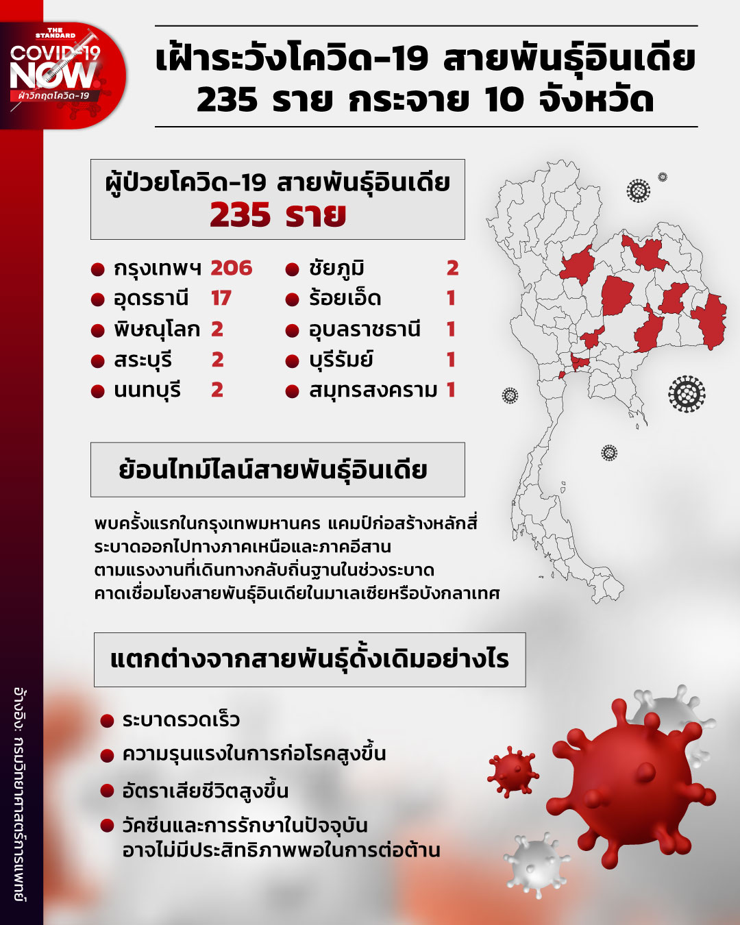 เชื้อไวรัสโคโรนา 2019 สายพันธุ์เดลตา (อินเดีย) 1 ใน 3 สายพันธุ์น่ากังวลในประเทศไทยนอกจากสายพันธุ์อัลฟา (อังกฤษ) และสายพันธุ์บีตา (แอฟริกาใต้) ระบาดรวดเร็วและรุนแรง มีความเสี่ยงว่าวัคซีนหรือการรักษาในปัจจุบันยังไม่เพียงพอจะต่อกรกับเชื้อไวรัสนี้