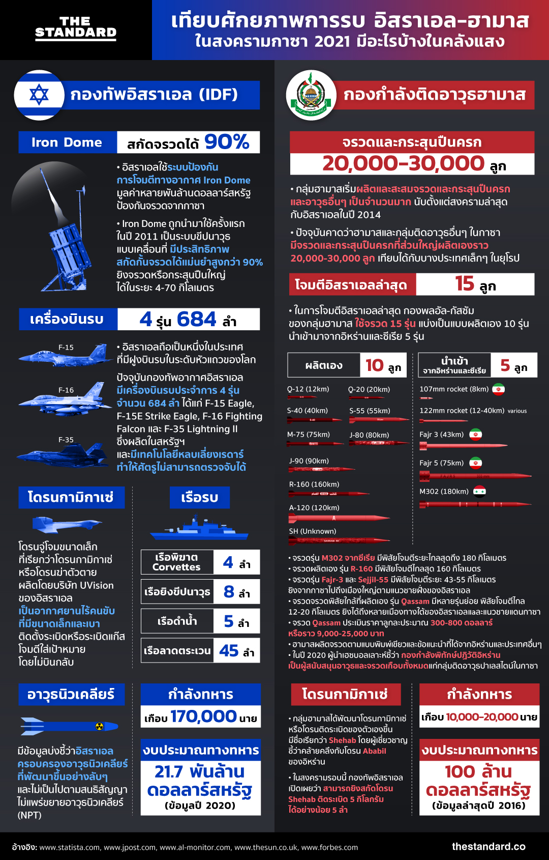 - อิสราเอลใช้ระบบป้องกันการโจมตีทางอากาศ Iron Dome มูลค่าหลายพันล้านดอลลาร์สหรัฐ ป้องกันจรวดจากกาซา