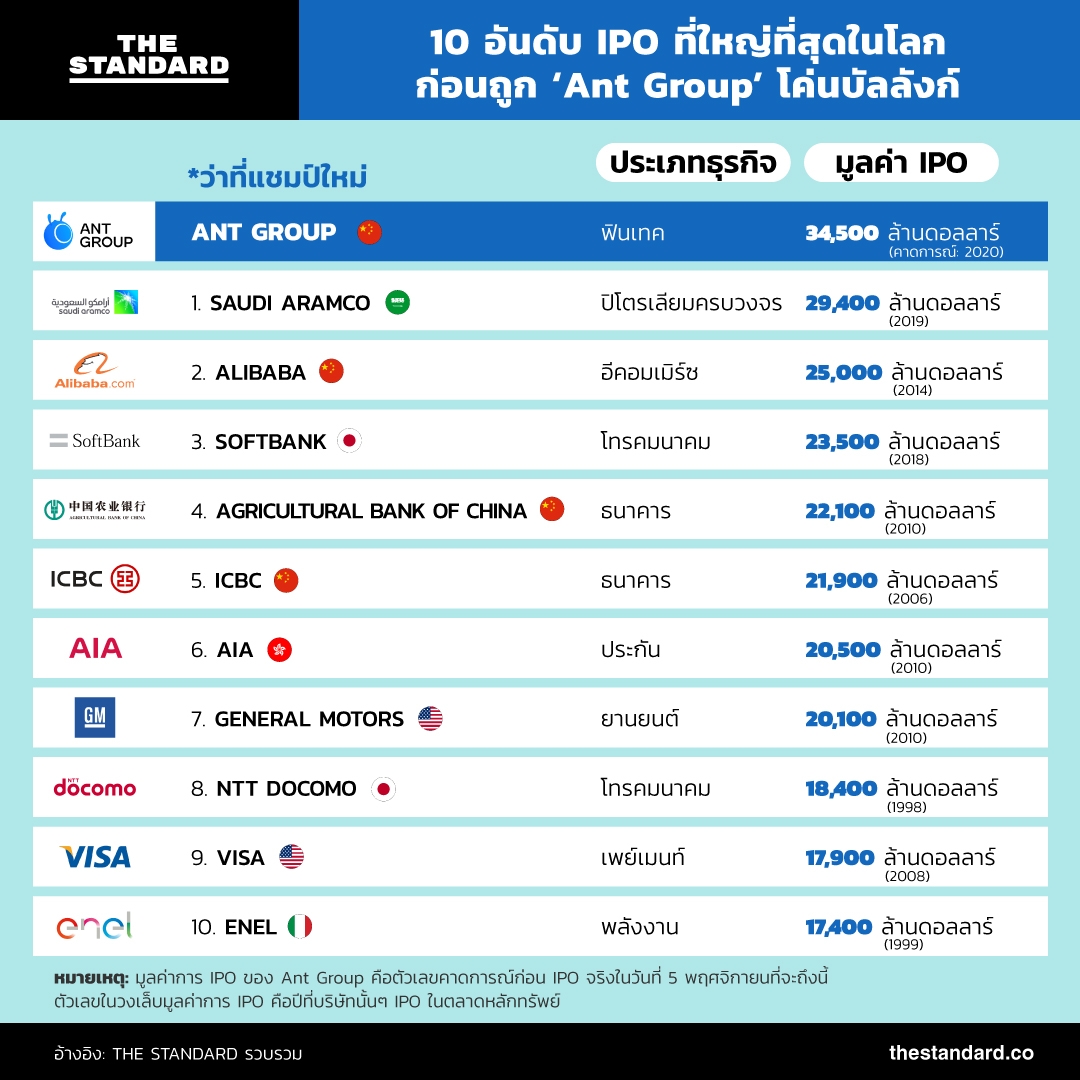 เมื่อรวมกันแล้วจะส่งผลให้การ IPO ของ Ant Group ในครั้งนี้มีมูลค่ามากถึง 34,500 ล้านดอลลาร์ และกลายเป็น IPO ครั้งประวัติศาสตร์ไปโดยปริยาย โค่นแชมป์ IPO มูลค่าสูงสุดเจ้าเก่าจากซาอุฯ อย่าง Saudi Aramco (ด้วยมูลค่าระดมทุนกว่า 2.94 หมื่นล้านดอลลาร์)