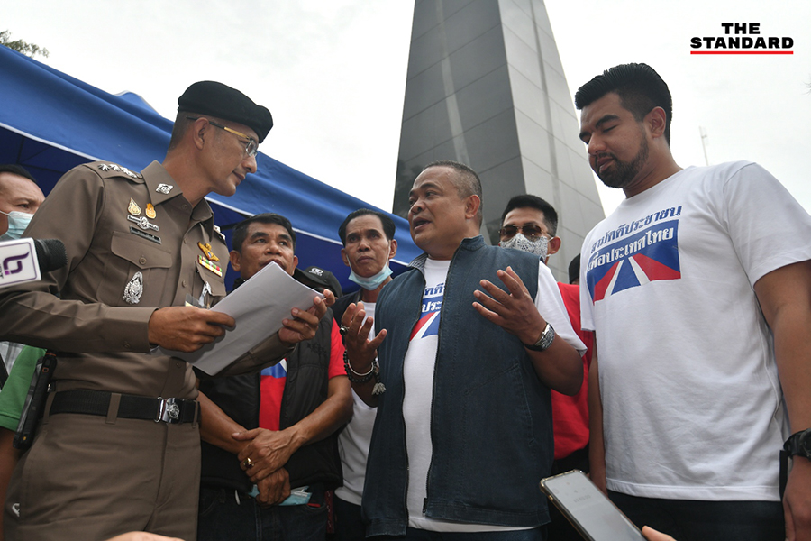 ขณะที่ก่อนเริ่มเวทีปราศรัย พ.ต.อ. สนอง แสงมณี ผู้กำกับสถานีตำรวจนครบาล (สน.) ชนะสงคราม พร้อมด้วยเจ้าหน้าที่เขตพระนคร กรุงเทพมหานคร เข้าแจ้งระเบียบการจัดการชุมนุมกับ จตุพร พรหมพันธุ์ ว่ายังคงอยู่ในช่วงการใช้ พ.ร.ก. ฉุกเฉิน ซึ่งห้ามทำกิจกรรมมั่วสุมที่ทำให้เกิดการแพร่ระบาดของโควิด-19 จึงมาเพื่อแจ้งขอย้ำเตือนให้กระบวนการจัดกิจกรรมครั้งนี้ยึดถือประกาศตาม พ.ร.ก. ฉุกเฉิน อย่างเคร่งครัด และหากการกระทำใดที่ล่วงละเมิดต่อกฎหมาย ก็จะต้องดำเนินคดีในภายหลัง