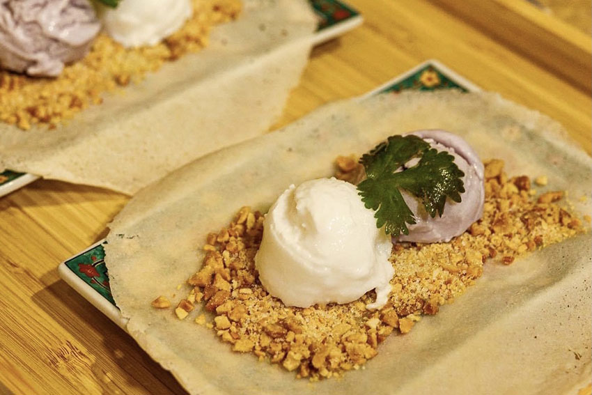 สำหรับของหวานก็มี Ice Cream Peanut Roll เมนูไอศกรีมที่เสิร์ฟบนแผ่นแป้งบางๆ และโรยถั่วลิสงไว้ทั่ว เป็นเมนูที่นิยมกินกันในไต้หวัน แต่ยังไม่แพร่หลายในไทยมากนัก หรือจะเลือกเบาๆ แต่น่าลองอย่าง Mung Bean Smoothie สมูทตี้ถั่วเขียวที่จะเลือกกินเปล่าๆ หรือกินกับไข่มุกโฮมเมด 3 สีของทางร้านก็ได้
