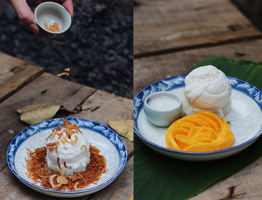 ร้านนี้มีไอศกรีมโฮมเมดหลากหลายรสชาติ แต่ก็มีเมนูพิเศษประจำเดือนที่เป็นไอศกรีมรสชาติแปลกๆ จากวัตถุดิบแปลกๆ ที่เราไม่คาดคิดว่าเอามาทำเป็นไอศกรีมได้อย่าง ‘ไอศกรีมซอสเย็นตาโฟเสิร์ฟคู่กับเกี๊ยวกรอบ’ ที่เป็นเมนูพิเศษของเดือนที่แล้ว ส่วนเดือนนี้ทางร้านมาพร้อมกับ ‘ไอศกรีมกะทิเสิร์ฟคู่กับหมูฝอยและข้าวเหนียวมูน’ หลายคนอาจจะเริ่มสงสัยว่ากินด้วยกันได้จริงเหรอ เราบอกเลยว่าได้ เตรียมตัวนัดเพื่อนๆ ไปลองชิมได้เลย ส่วนคนรักมะม่วงก็อย่าพลาด ‘​ไอศกรีมกะทิเสิร์ฟคู่กับข้าวเหนียวมะม่วง’ เมนูคู่บุญของฤดูร้อน ส่วนเมนูพิเศษของเดือนต่อไปจะเป็นอะไร แปลกแค่ไหน ก็ต้องติดตามกันต่อไป