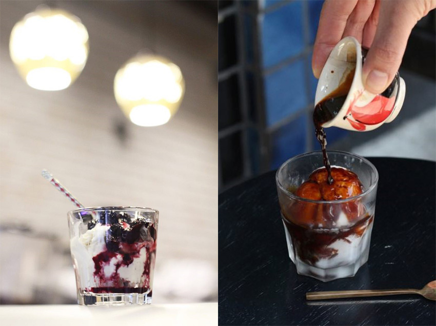 ส่วนเมนูขายดีของร้านที่ใครมาเป็นต้องสั่ง ‘ไอศกรีมชีสพายซอสบลูเบอร์รี’ รสชาติหวานมัน ตัดด้วยรสเปรี้ยวจากบลูเบอร์รี เหมือนกำลังกินบลูเบอร์รีชีสพายแบบเย็นจัด และ ‘ไอศกรีมกะทิอัฟโฟกาโต’ เมนูที่คอกาแฟรัก