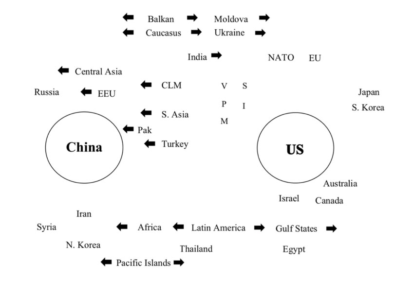 แผนที่ของโลกในปัจจุบันกำลังเกิดสงครามเย็นภาค 2 หรือ Cold War II ที่โลกกำลังแบ่งเป็น 2 ขั้ว คือ ขั้วสหรัฐฯ กับขั้วจีน และประเทศต่างๆ ก็ต้องกำหนดท่าทีของตนว่าตัวเองจะเป็นพวกใคร เป็นพวกจีนหรือพวกอเมริกา หรือจะพยายามวางตัวเป็นกลาง ซึ่งประเทศที่พยายามวางตัวเป็นกลางก็จะดำเนินนโยบายลำบากขึ้นเรื่อยๆ เพราะกำลังถูกบีบให้เลือกข้าง นี่คือสถานการณ์ที่ไบเดนประสบอยู่คือต้องแข่งกับจีนในการบีบให้ประเทศต่างๆ มาเป็นพวกตน