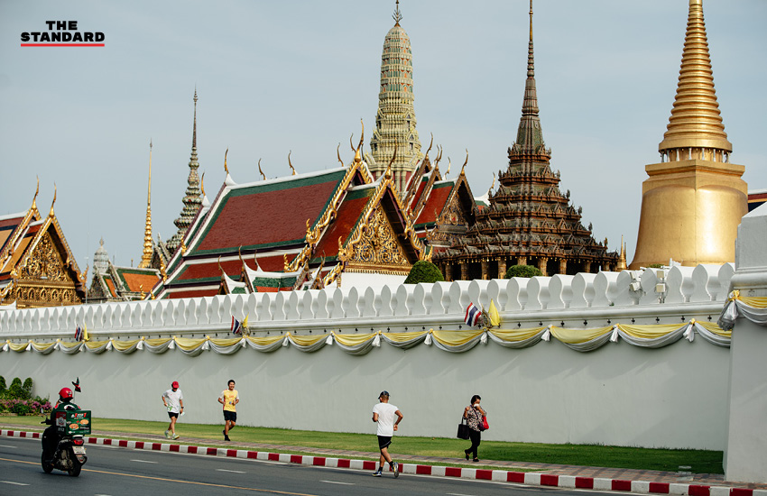 วันนี้ (16 เมษายน) ในช่วงเวลาหลังเลิกงานตอนเย็น บรรยากาศบริเวณโดยรอบของวัดพระศรีรัตนศาสดาราม หรือวัดพระแก้ว มีประชาชนจำนวนหนึ่งเลือกใช้เวลานี้มาวิ่งออกกำลังกายบนทางเท้าท่ามกลางอุณหภูมิ 34 องศาเซลเซียส ประชาชนบางส่วนที่มาออกกำลังกายนั้นมีการป้องกันตัวเองหลายรูปแบบ ทั้งการใส่หน้ากาก การใส่ Face Shield รวมทั้งการรักษาระยะห่าง (Social Distancing) ระหว่างผู้วิ่งด้วยกันเอง