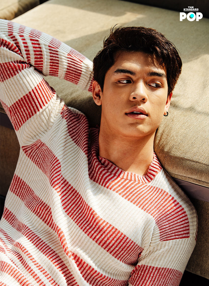 ตอนนี้ถ้าถามว่าผมเป็นใคร ผมก็กล้าพูดได้เต็มปากแล้วว่าเป็นนักแสดงครับ พอเรามีผลงานมา 2 เรื่องที่รับเป็นบทหลัก ซีรีส์เรื่องหนึ่ง 3 Will Be Free สามเราต้องรอด และละครเรื่องหนึ่งคือ เกมรักเอาคืน ผมก็กล้าพูดว่าผมเป็นนักแสดง ถ้าคนที่ยังไม่รู้จักผม ผมจะพูดว่ายังไงดี… ผมก็เป็นเด็กอายุ 23 ปี ซึ่งก็ไม่ได้เด็กขนาดนั้น จบนิเทศศาสตร์ จุฬาฯ ทำงานเป็นบล็อกเกอร์กับพี่ๆ ในรายการ ‘ดูมันดิ’ แล้วก็เข้าวงการมาเป็นนักแสดงด้วยโอกาสและความบังเอิญมั้งครับ เพราะผมไม่เคยคิดมาก่อนว่าตัวเองจะเป็นนักแสดง แล้วผมก็เป็นเด็กคนหนึ่งที่ชอบเล่นกีฬามาก เป็นสายกีฬา ไม่ใช่สายดนตรี เล่นกีฬา บาสเกตบอล ฟิตเนส ว่ายน้ำ ต่อยมวย เป็นคนที่แอ็กทีฟมากๆ