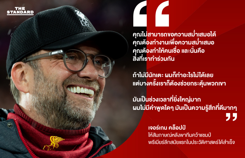 รวมประโยคเด็ด เจอร์เกน คล็อปป์ กุนซือผู้พาลิเวอร์พูลสู่แชมป์ลีกสูงสุดของอังกฤษครั้งแรกในรอบ 30 ปี