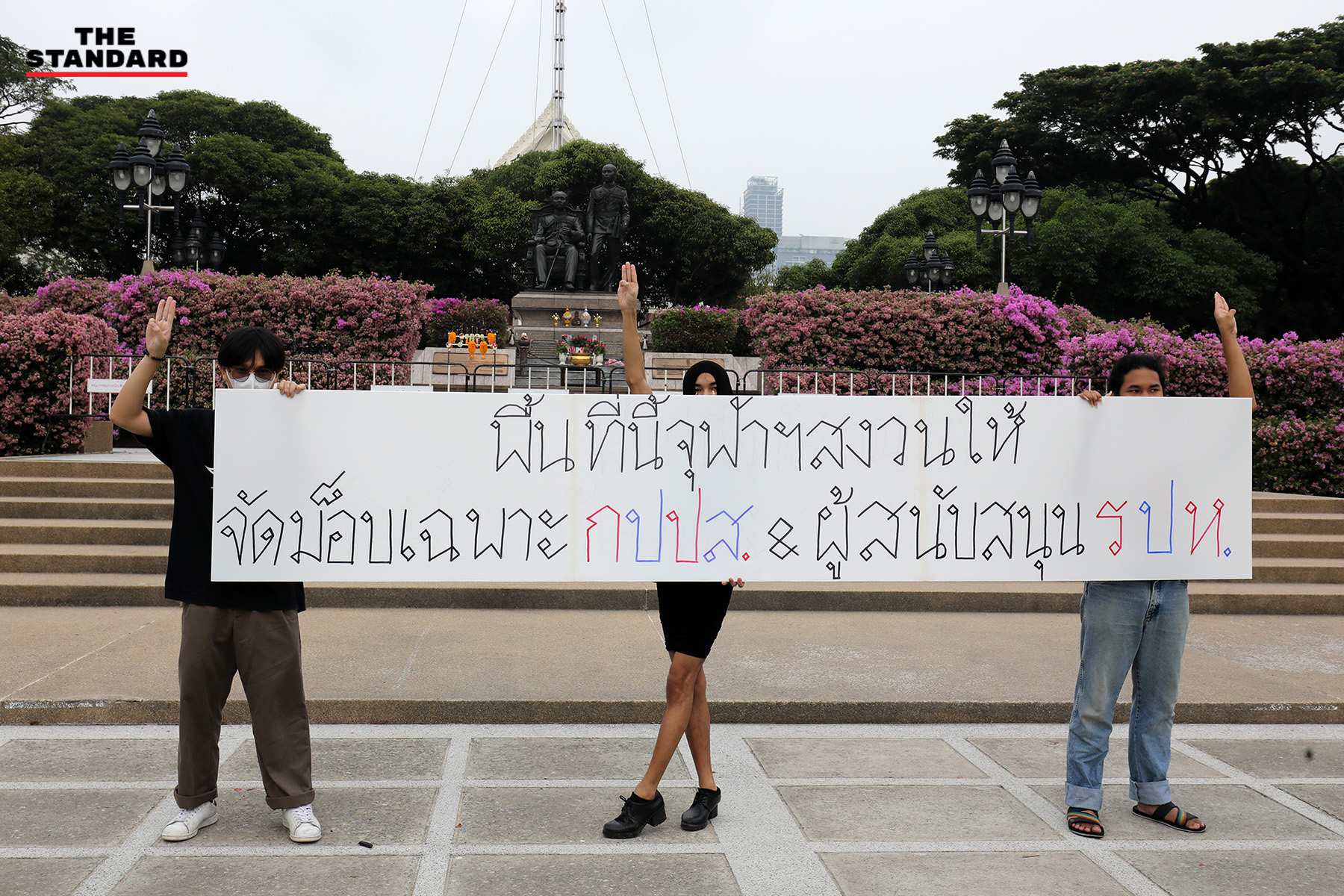 วันนี้ (5 เมษายน) กลุ่มนิสิต ‘คณะจุฬาฯ’ และกลุ่มนิสิตและศิษย์เก่าจุฬาฯ จัดกิจกรรม ‘เสาหลักจะไม่หักเหมือนตาชั่ง’ เพื่อเรียกร้องให้รัฐบาลยุติการคุกคามประชาชนผู้ออกมาชุมนุมเพื่อแสดงออกทางการเมือง พร้อมกับเรียกร้องให้ศาลยุติธรรมสั่งปล่อยตัวแกนนำและสมาชิกแนวร่วมกลุ่มคณะราษฎรที่ถูกดำเนินคดีในข้อหาความผิดประมวลกฎหมายอาญา มาตรา 112 โดยไม่มีเงื่อนไข และยกเลิกการใช้มาตราดังกล่าว