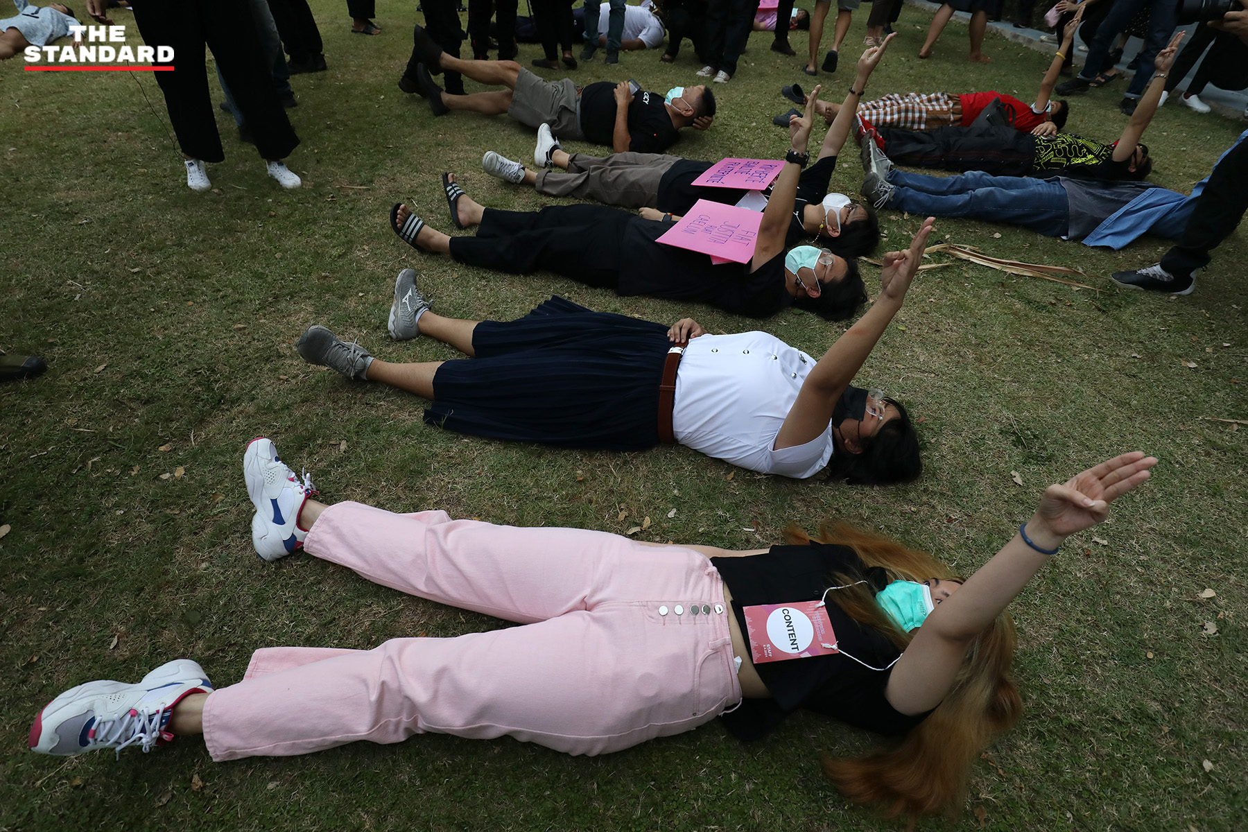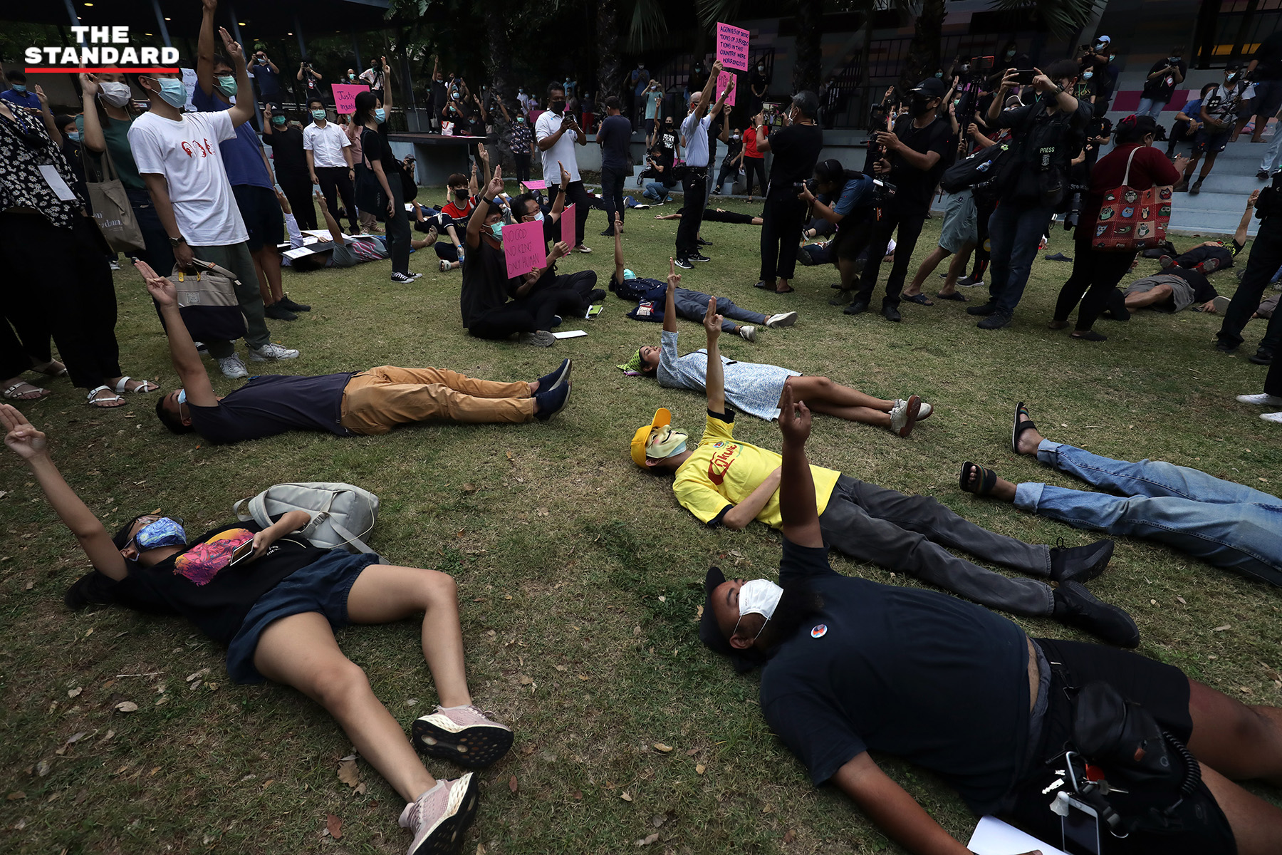 ทั้งนี้ ในเวลา 18.00 น. ผู้จัดกิจกรรมได้เชิญชวนให้ผู้เข้าร่วมกิจกรรมนอนชูสามนิ้วเคารพเพลงชาติ ก่อนที่มีการเริ่มปราศรัยในหัวข้อต่างๆ จากทั้งกลุ่มนิสิต ตัวแทนกลุ่มกิจกรรมต่างๆ ในหลากหลายหัวข้อ