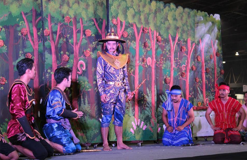 โรงเรียนแห่งหนึ่งกำลังแสดงละครประวัติศาสตร์ไทยที่มีชาวกะเหรี่ยงเป็นตัวแสดงสำคัญ (สองคนขวามือ)