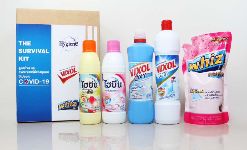ซึ่ง กลุ่มบริษัท ไอ.พี. ห่วงใยคนไทย และอยากให้ทุกคน ‘อยู่บ้านให้ปลอดภัย ต้องทำบ้านให้ปลอดเชื้อ’ จัดเซต The Survival Kit ช่วยดูแลบ้านให้ปลอดเชื้อ โดยเฉพาะ Work Station ของเหล่ามนุษย์ Work from Home ประกอบด้วย ไฮยีนซักผ้าขาว, ไฮยีนซักผ้าสี, วิซ ชิลด์เทค, วิกซอล ออกซี่, และวิก ซอลไวท์ จะเห็นว่าผลิตภัณฑ์ที่อยู่ในเซต เป็นผลิตภัณฑ์ทำความสะอาดที่ทุกบ้านคุ้นเคยเป็นอย่างดี และในสถานการณ์เช่นนี้ เราสามารถปรับสูตรให้กลายเป็นเครื่องมือฆ่าเชื้อโควิด-19 ที่มีประสิทธิภาพ
