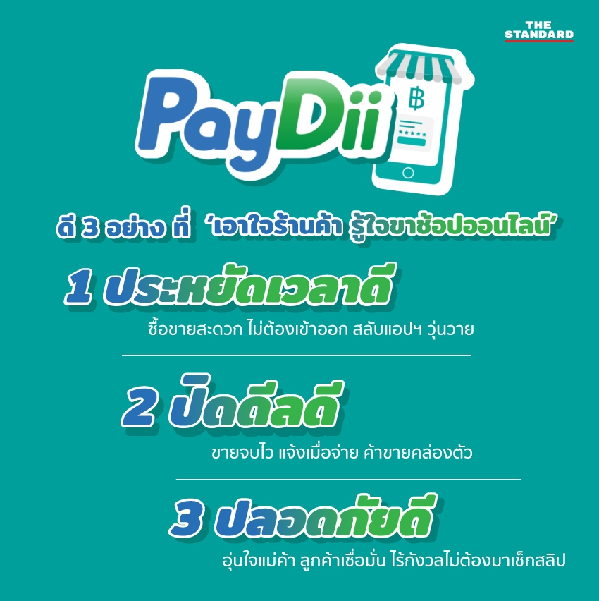 “ด้วยความที่เรามีโครงสร้างการบริหารที่อิสระ มีความคล่องตัวสูง ซึ่งจะทำให้เราพัฒนาแพลตฟอร์มต่างๆ ได้ตอบโจทย์ผู้บริโภคมากขึ้น อย่างระบบ PayDii ลูกค้าที่เป็นฝั่งร้านค้าไม่ต้องห่วงเลยว่าจะมีบัญชีธนาคารไหน เพราะสามารถเลือกบัญชีธนาคารใดก็ได้เป็นบัญชีรับเงินผ่าบบริการ PayDii ส่วนฝั่งผู้ซื้อก็สามารถเลือกใช้ Mobile Banking ได้ 4 แบงก์ไม่ว่าจะเป็น กสิกรไทย ไทยพาณิชย์ กรุงเทพ และกรุงศรีฯ ไม่เสียค่าบริการเพิ่มเติม ซึ่งต่อไปก็จะเพิ่มให้ครอบคลุมมากขึ้น