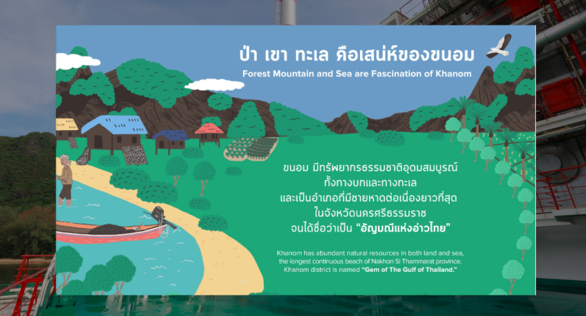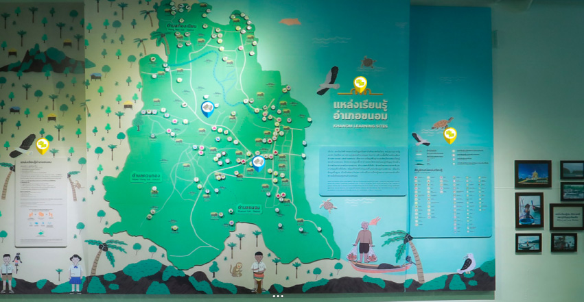 โซนสุดท้ายที่จะนำให้ผู้ชมได้รู้จักอำเภอขนอมมากขึ้นผ่าน ‘แผนที่แหล่งเรียนรู้อำเภอขนอม’ ซึ่งเอ็กโก กรุ๊ป ลงพื้นที่ร่วมกับชุมชน คัดเลือกจุดเรียนรู้ต่างๆ และมีสื่อที่ได้รับการสนับสนุนจากชุมชนในพื้นที่มาร่วมแสดงข้อมูล ทำให้ศูนย์เรียนรู้โรงไฟฟ้าขนอมแห่งนี้เป็นพื้นที่แห่งการเรียนรู้ของเยาวชน และส่งเสริมการพัฒนาชุมชนขนอมอย่างยั่งยืนที่แท้จริง