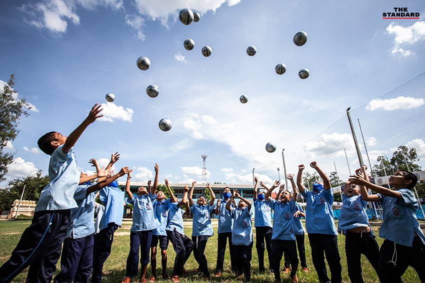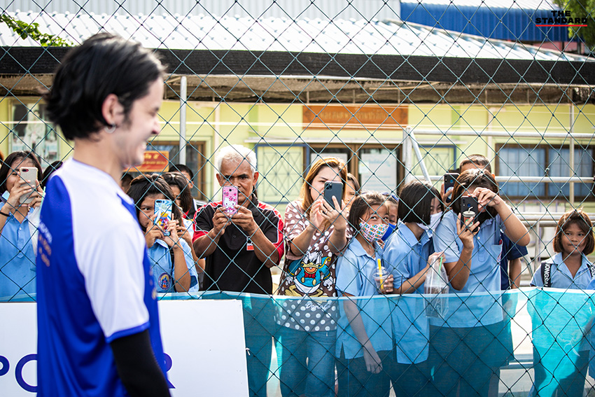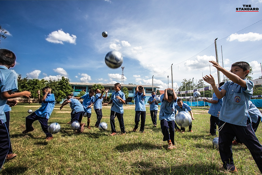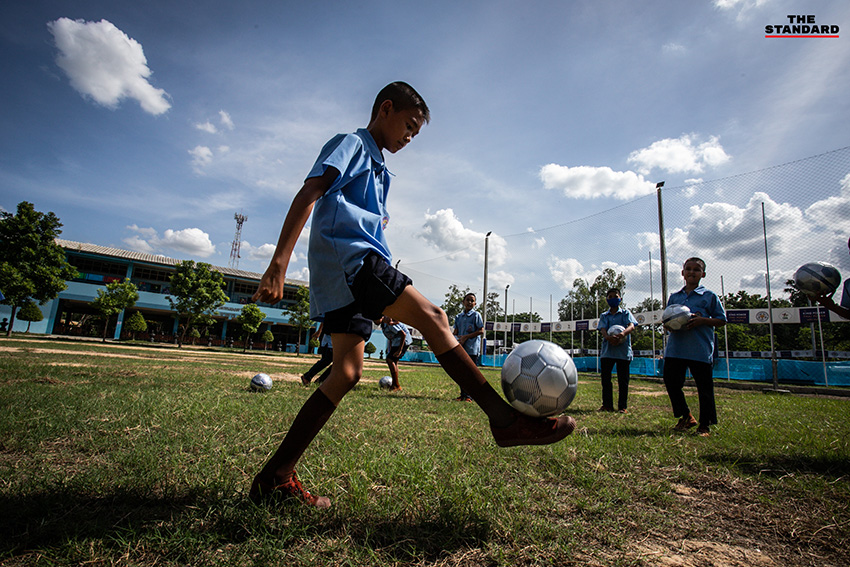 ขณะที่บรรยากาศที่โรงเรียนวัดหนองศาลา (ประชานุกูล) จังหวัดนครปฐม จากการลงพื้นที่ของ THE STANDARD ได้พบเห็นเยาวชนให้ความสนใจเป็นจำนวนมาก โดยในโรงเรียนพื้นที่ใกล้เคียงได้เข้ามารอรับลูกฟุตบอล ก่อนที่ช่วงเย็นจะมีการแข่งขันฟุตบอลนัดพิเศษระหว่าง 4 นักเตะ Fox Hunt และดารารับเชิญ เก้า-จิรายุ ละอองมณี พร้อมด้วยน้องๆ เยาวชนโรงเรียนวัดหนองศาลา (ประชานุกูล) ที่มาดวลแข้งกันอย่างสนุกสนาน ร่วมสร้างประสบการณ์และแรงบันดาลใจในการเป็นนักฟุตบอลมืออาชีพ