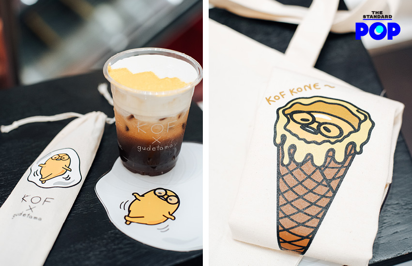 KOF สาขาเอ็มควอเทียร์ เห็นความน่ารักของเจ้าไข่ขี้เกียจ จึงจับมาทำ Limited Collaboration โดยการใส่แว่นให้เจ้าไข่เพื่อเป็นตัวแทนหนุ่มสาวชาวออฟฟิศที่ทำงานหนักจนเหน็ดเหนื่อยเมื่อยล้าจนอยากล้มตัวลงนอนสักงีบ แล้วปล่อยกองทัพไข่ขี้เกียจไปบุกทั่วเคาน์เตอร์และโต๊ะเก้าอี้ในร้านสาขาเอ็มควอเทียร์ ให้คุณได้เข้ามาชมความน่ารักและถ่ายรูปเก็บไว้ นอกจากนี้ยังมี egg-clusive menu ทั้ง 6 ที่จะมาเพิ่มพลังและเติมความสดชื่นให้กับทุกคน มีตั้งแต่เมนูกาแฟเติมพลังยามเช้า โกโก้ ชาไทย เพิ่มความหวานในยามบ่าย และชาใสหอมๆ ที่ดื่มได้ทุกโอกาส