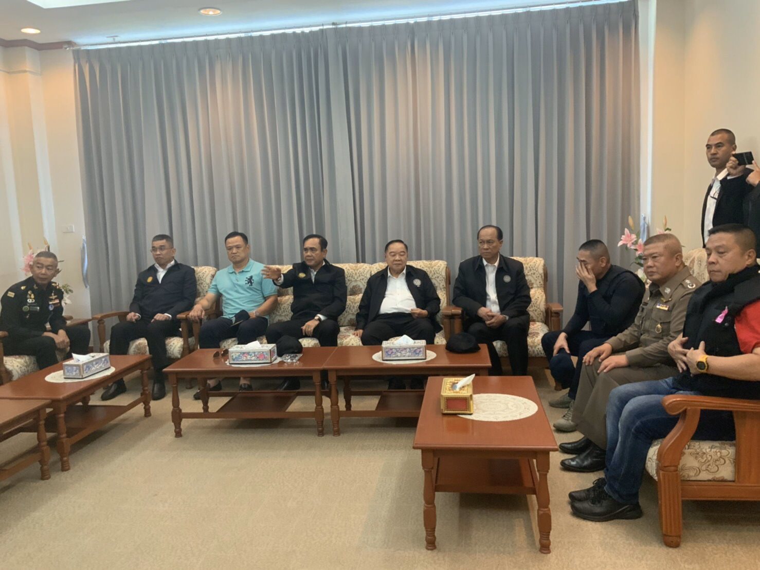 เวลาประมาณ 10.00 น. วันที่ 9 กุมภาพันธ์ 2563 พล.อ. ประยุทธ์ จันทร์โอชา นายกรัฐมนตรี พร้อมด้วย พล.อ. ประวิตร วงษ์สุวรรณ, พล.อ. อนุพงษ์ เผ่าจินดา, อนุทิน ชาญวีรกูล, พล.อ. อภิรัชต์ คงสมพงษ์, พล.ต.อ. จักรทิพย์ ชัยจินดา และเจ้าหน้าที่ที่เกี่ยวข้อง ลงพื้นที่รับแจ้งสรุปสถานการณ์เหตุการณ์กราดยิงโคราช ก่อนจะไปเยี่ยมผู้บาดเจ็บ ครอบครัวผู้เสียชีวิต และเจ้าหน้าที่ที่ปฏิบัติงานที่โรงพยาบาลต่อไป