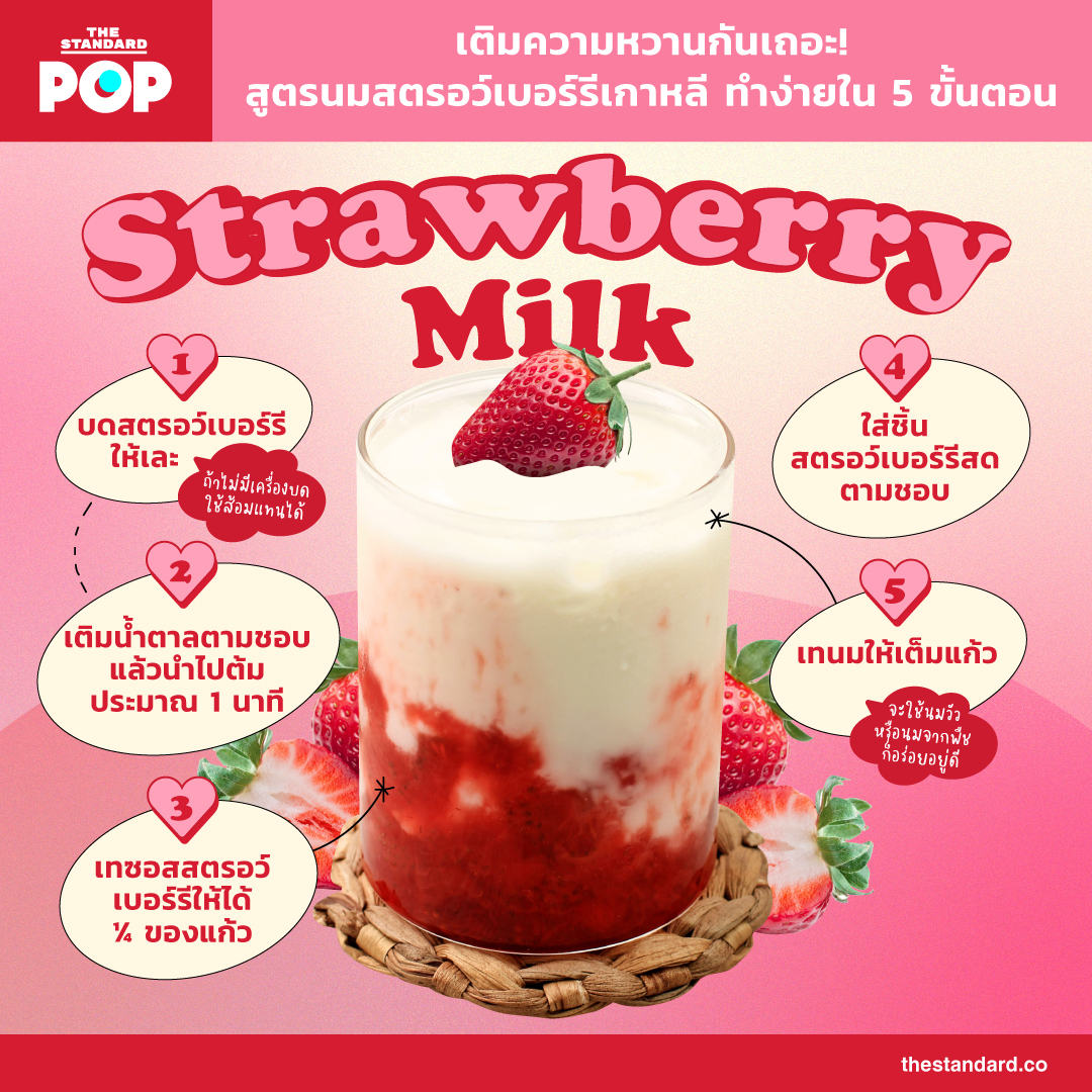 เมื่อต้องอยู่บ้านนานๆ ก็คิดถึงคาเฟ่เป็นธรรมดา เรามาลองเปลี่ยนบ้านเป็นคาเฟ่สไตล์เกาหลีด้วยสูตรนมสตรอว์เบอร์รีเกาหลีที่ทำกินเองได้ง่ายๆ ที่บ้านใน 5 ขั้นตอน