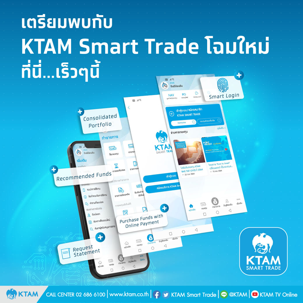 ทำให้ทุกบริษัท ทุกสถาบันการเงิน เร่งพัฒนาแอปพลิเคชันเพื่ออำนวยความสะดวกให้แก่นักลงทุน และตอบโจทย์การลงทุนยุคใหม่ให้ได้มากที่สุด บริษัทหลักทรัพย์จัดการกองทุน กรุงไทย จำกัด (มหาชน) (บลจ.กรุงไทย) ก็เช่นกัน ล่าสุดประกาศปรับปรุงและพัฒนา KTAM Smart Trade แอปพลิเคชันที่จะช่วยให้การซื้อ ขาย และวางแผนการลงทุนทุกกองทุนเป็นเรื่องง่าย เพื่อสร้างประสบการณ์การลงทุนที่รู้ใจคุณมากยิ่งขึ้น เปลี่ยนการ Work from Home ให้เป็น Wealth from Home พร้อมให้นักลงทุนดาวน์โหลด KTAM Smart Trade ดีไซน์ใหม่พร้อมกัน 27 สิงหาคมนี้