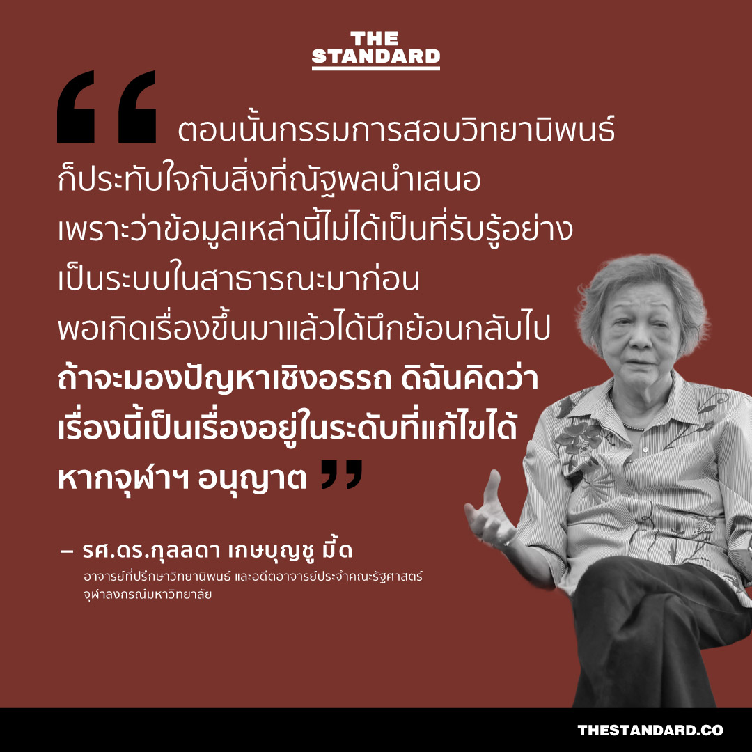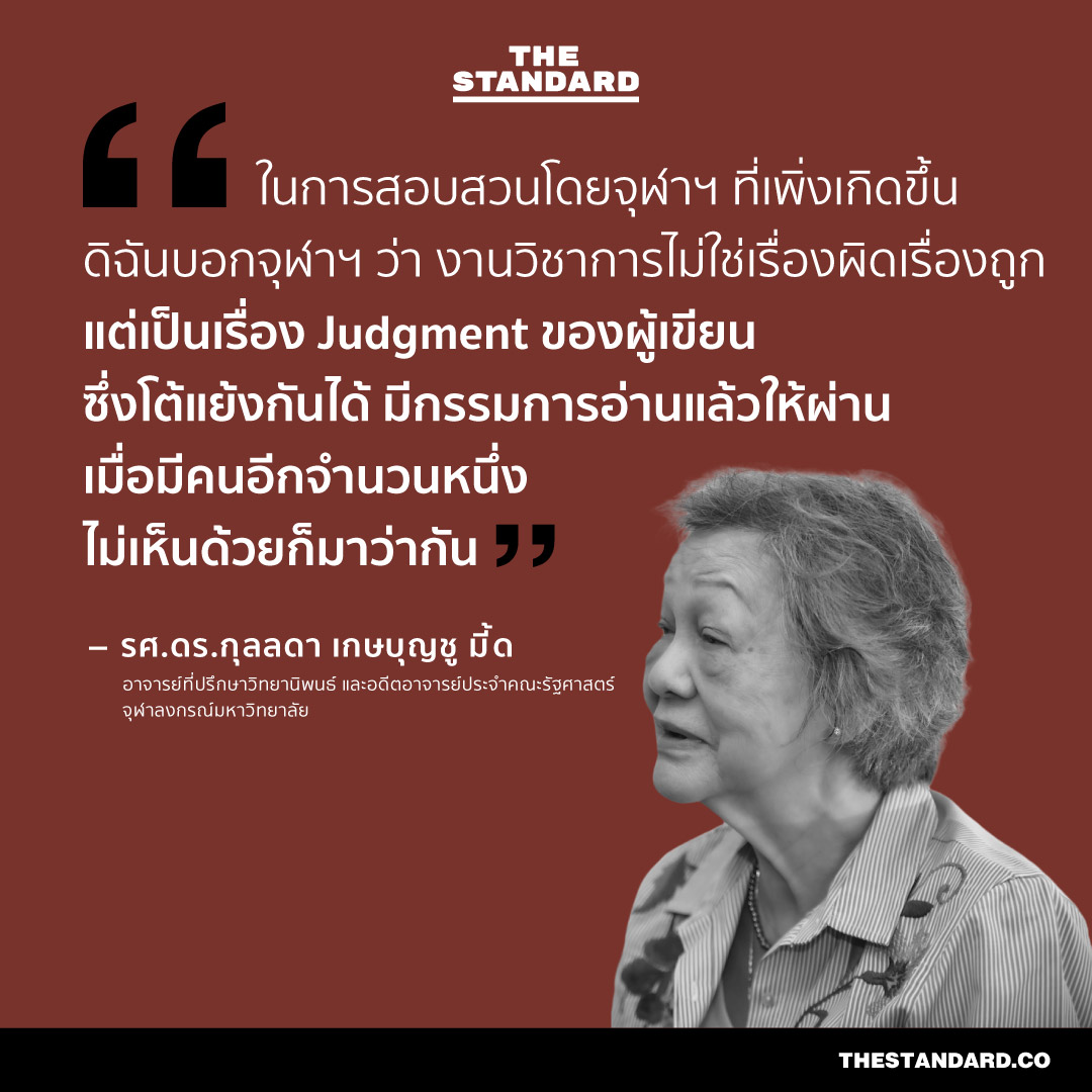 THE STANDARD สัมภาษณ์ กุลลดา เกษบุญชู มี้ด จำเลยที่ 2 ในฐานะที่ปรึกษาวิทยานิพนธ์ของ ณัฐพล ใจจริง เธอคือนักวิชาการที่คนในแวดวงวิชาการรู้จักและยอมรับในบทบาทอย่างยิ่ง