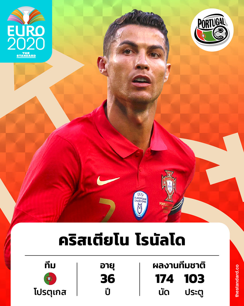*ข้อมูลบนภาพคือสถิติก่อนการแข่งขันยูโร 2020 โดยปัจจุบันคริสเตียโน โรนัลโดลงแข่งให้ทีมชาติไป 176 นัด ทำไป 106 ประตู