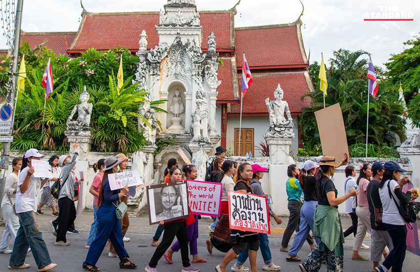 โดยเคลื่อนขบวนจากพุทธสถานไปยังอนุสาวรีย์สามกษัตริย์ มีผู้ใช้แรงงานหลากหลายกลุ่ม ทั้งชาวไทยและชาวต่างชาติเข้าร่วมกว่า 300 คน