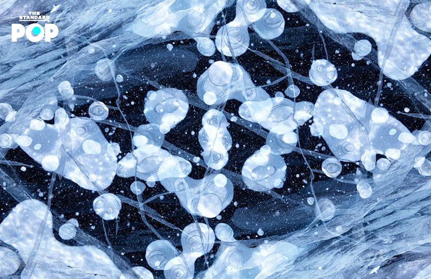 ฟองแก๊สที่เกิดจากพืชใต้ทะเลสาบ
