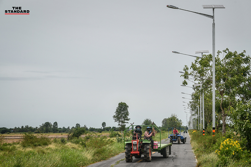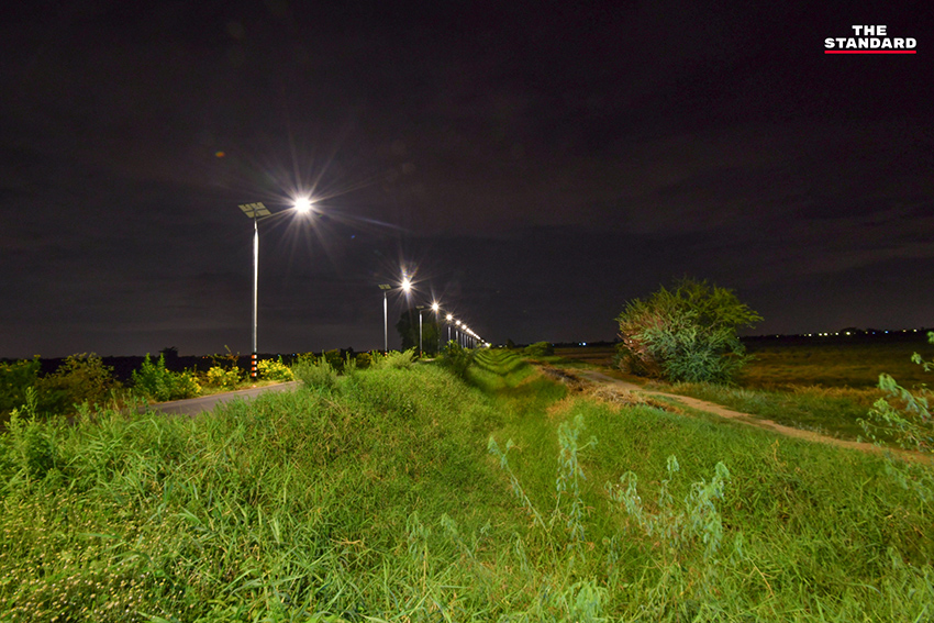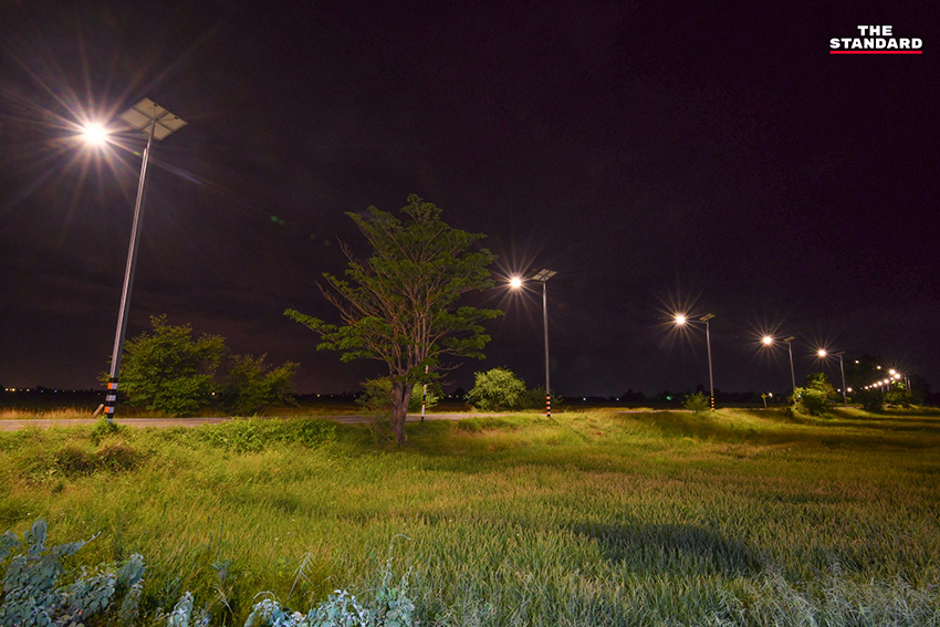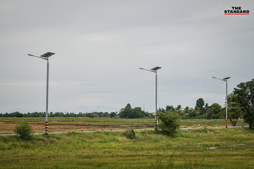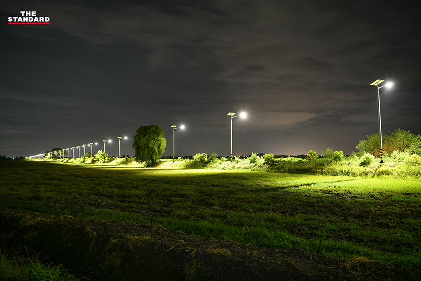 ในส่วนของตัวเสาไฟฟ้าที่มีความสูง 8 เมตร แบบไม่มีรอยต่อ เนื่องจากข้างบนเสาไฟฟ้าจะถูกติดตั้งโคมไฟ แผงโซลาร์เซลล์ และแบตเตอรี่ซึ่งมีน้ำหนัก ถ้าเกิดมีลมพายุพัดเสาไฟฟ้าแบบมีรอยต่ออาจจะหักโค่นมาทำให้เกิดอุบัติเหตุเป็นอันตรายต่อพี่น้องประชาชนที่ใช้เส้นทางสัญจรผ่านไปมาได้ และที่ต้องมีความสูงถึง 8 เมตร เพราะถนนในจังหวัดอ่างทองมีรถทางการเกษตรใช้สัญจร เช่น รถไถนา รถเกี่ยวข้าวที่ต้องขึ้นเทรลเลอร์ในการเดินทาง รถบรรทุกข้าว รถบรรทุกฟางที่มีความสูง ถ้าเป็นเสาไฟฟ้าที่มีความสูง 6 เมตร อาจจะไปเกี่ยวเสาไฟฟ้าได้รับความเสียหายได้