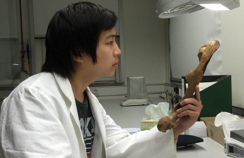 ดร.กันตภณ สุระประสิทธิ์ ระหว่างการวิเคราะห์กระดูกสัตว์ในห้องปฏิบัติการ