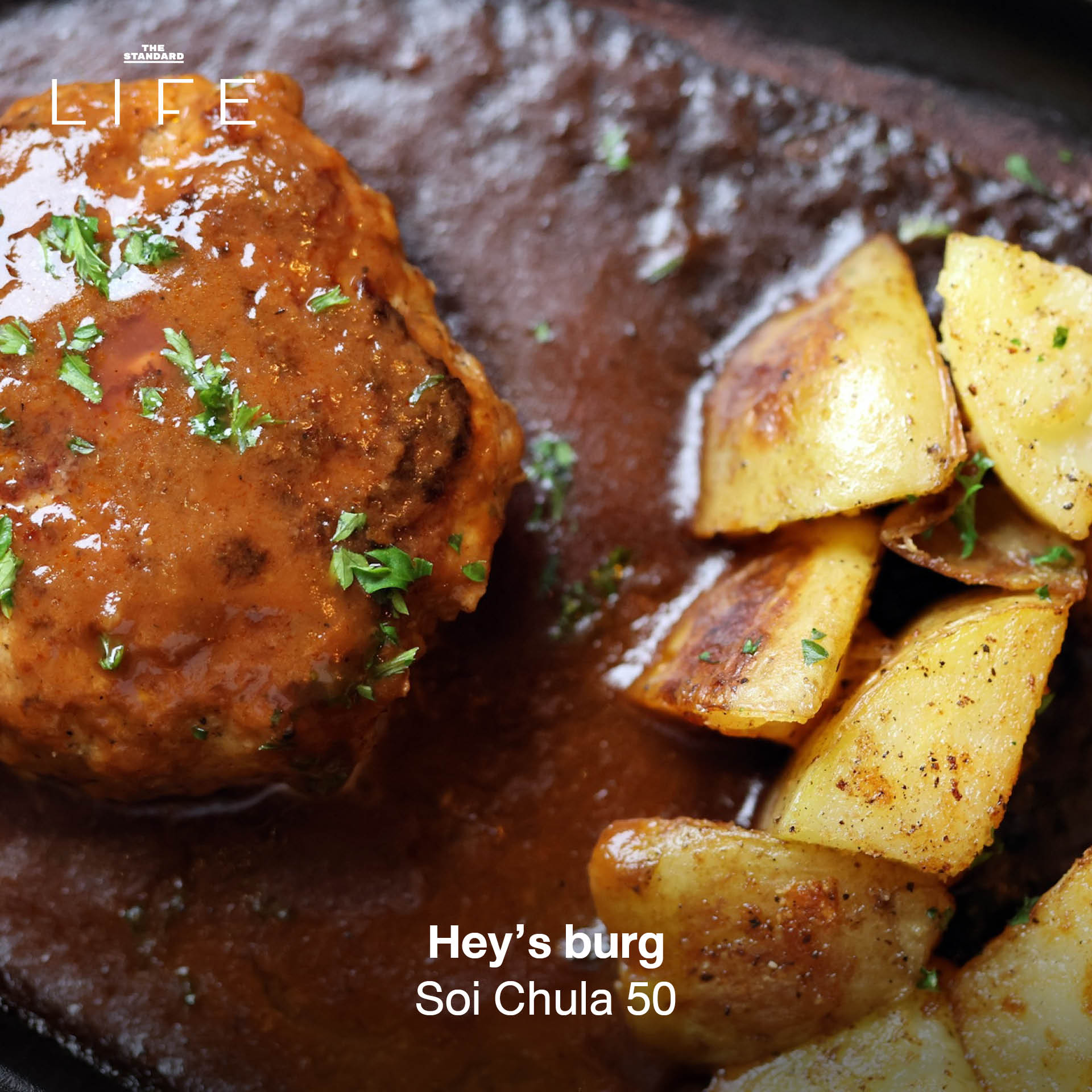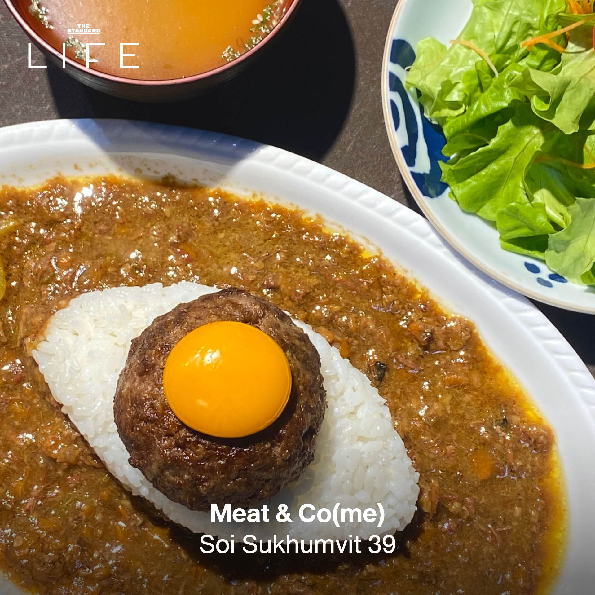 ไหนใครอยู่ฝั่งธนบ้าง ยกมือขึ้น! มาที่นี่เราจะได้กินแฮมเบิร์กราดซอส ‘แกงกะหรี่’ ที่เป็นสูตรเคี่ยวจากผักและผลไม้ 100% (ไม่มีเนื้อสัตว์ผสมในน้ำซอสเลย) แต่ยังได้รสชาติที่กลมกล่อมพอดี นอกจากนี้ทุกคนยังสามารถเลือกระดับความสุกของเนื้อได้ด้วยได้ด้วย (แนะนำให้ลองสั่งแบบ Medium Rare มาชิมดู เพราะเนื้อจะฉ่ำที่สุด)