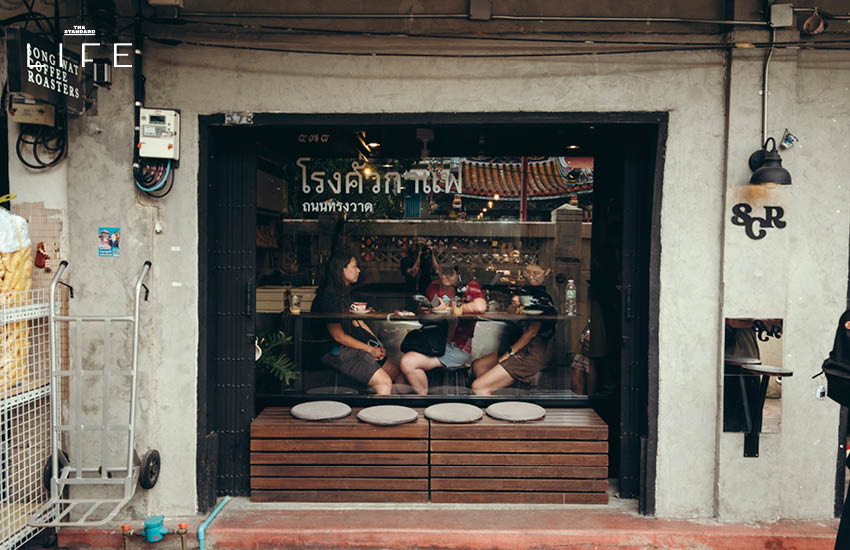 ขยับมาอีกหนึ่งร้านใกล้กัน ซึ่งร้านนี้ก็เป็นร้านที่เชฟแพมแวะมาทานกาแฟบ่อยๆ นั่นคือ Song Wat Coffee Roasters ตัวร้านอยู่ในตรอกโรงโคม ทางร้านค่อนข้างจริงจังด้านรสชาติกาแฟ เพราะมีตัวเลือกเมล็ดกาแฟ และเมนูที่หลากหลาย ซึ่งทำให้เชฟแพมไม่ได้มีเมนูประจำที่สั่งซ้ำๆ แต่จะเป็นการลองเมนูใหม่ๆ เมล็ดใหม่ๆ ไปเรื่อยๆ