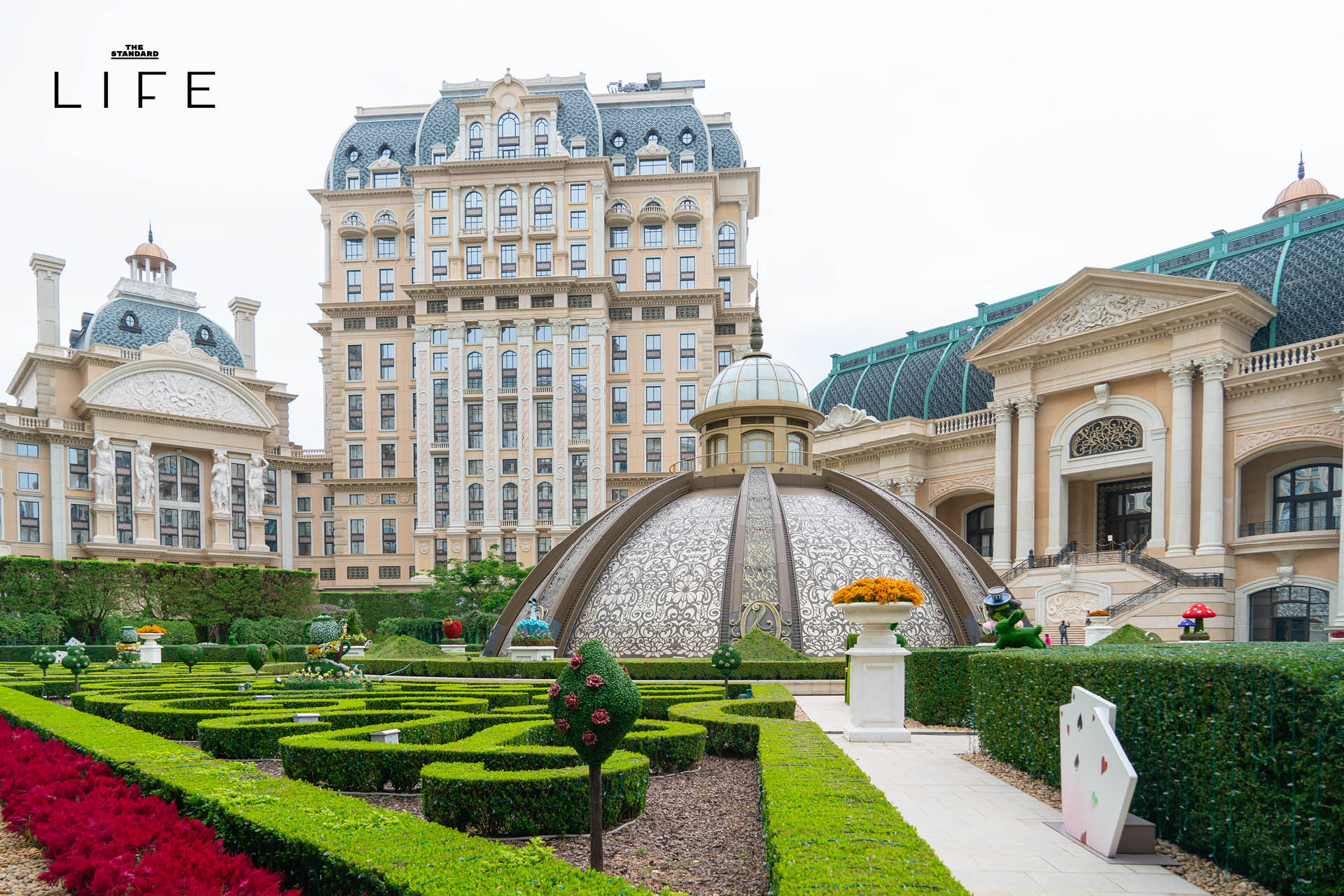 แม้เตียงนอนในห้องพักของ Grand Lisboa Palace Macau จะนุ่มสบายจนไม่อยากลุก แต่คงเสียดายแย่ถ้าไม่ได้ไปสูดโอโซนในสวน Jardim Secreto สไตล์บาโรกโดยมีตัวอาคารของโรงแรมโอบล้อม