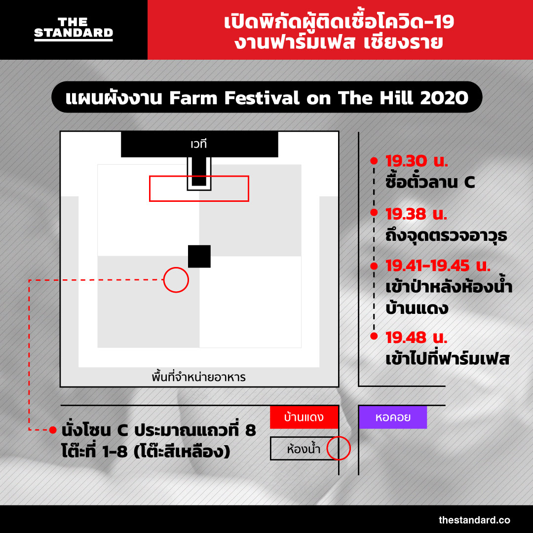 ดังนั้น หากผู้ที่เข้าไปในพื้นที่บริเวณหน้าเวที, โซนลานเบียร์, ห้องน้ำ ขอให้แจ้งเจ้าหน้าที่เพื่อรับคำแนะนำ พร้อมรับการตรวจโควิด-19 และหากผู้ที่อยู่ในงานเดียวกันและเกิดความกังวล สามารถติดต่อไปยังสำนักงานสาธารณสุขจังหวัด (สสจ.) เชียงราย โทร. 0 5428 1027-15 และ สสจ.เชียงใหม่ โทร. 08 4805 3131, 08 4805 2121