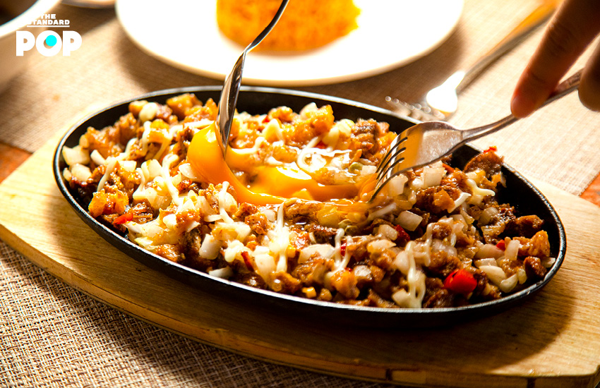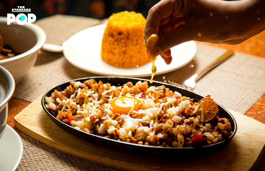 เห็นกระทะร้อนส่งเสียงซู่ๆ พร้อมควันหอมกรุ่นแบบนี้ก็ต้องเป็น Crispy Pork Sisig (240 บาท) หมูสามชั้นหั่นเต๋าทอดจนกรอบ (เราบอกเลยว่ากรอบมากจริงๆ ใครชอบกินอะไรกรอบๆ ต้องมาลอง) เสิร์ฟบนกระทะร้อนพร้อมไข่แดง เวลากินให้คลุกเคล้าในตอนที่ยังร้อนอยู่ให้เข้ากัน แล้วบีบส้มจี๊ดลงไปเพื่อเพิ่มรสชาติ Sisig เป็นอาหารที่ชาวฟิลิปปินส์มักจะกินกับเครื่องดื่มแอลกอฮอล์ ถือว่าเป็นเมนูสังสรรค์ เพราะกินด้วยกันแล้วเข้ากันมากๆ ถ้าใครมาลอง เมนูนี้พลาดไม่ได้ที่จะต้องสั่ง