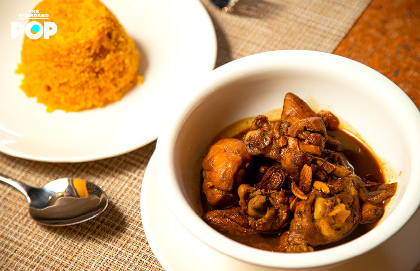 อาหารฟิลิปปินส์นั้นมีความคล้ายกับอาหารไทยอยู่หลายส่วน ทั้งเครื่องเทศ รสชาติ และการกินกับข้าวพร้อมข้าวสวย ก่อนจะไปแนะนำในส่วนของกับข้าว เราขอแนะนำ ‘Java Rice’ หรือข้าวเครื่องเทศที่ชื่อว่า Annatto หรือคำแสด ที่นำเข้ามาจากฟิลิปปินส์ คำแสดเป็นสีผสมอาหารแบบธรรมชาติที่จะให้สีส้มๆ แดงๆ และมีกลิ่นหอม มีสรรพคุณหลายอย่าง ลองสังเกตดูว่ารูปทรงของข้าวจะแตกต่าง นั่นเป็นเพราะรูปทรงข้าวแบบนี้เป็นที่คุ้นเคยของชาวฟิลิปปินส์ ทางร้านจึงนำเข้าพิมพ์ข้าวมาจากฟิลิปปินส์ ถือว่าเป็นการใส่ใจในรายละเอียดเล็กๆ น้อยๆ มากทีเดียว
