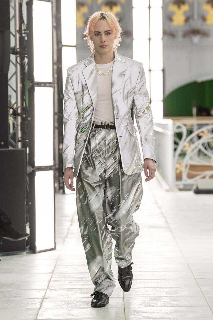 ด้านเสื้อผ้า นิโคลัสก็ยังคงเก็บกลิ่นอายความเป็นยุค 80 ผสมกับความ Futuristic ล้ำสมัยที่เขาถนัด โดยสำหรับซีซันนี้เขาได้แรงบันดาลใจจากการอยากหาความกึ่งกลางระหว่างความเป็นชาย (Masculine) และความเป็นหญิง (Feminine) ว่าอยู่ตรงไหน ซึ่งไม่ใช่การจะให้ผู้ชายไปใส่ชุดผู้หญิงหรือสลับกัน แต่คือความตรงกลาง ซึ่งก็ได้เห็นจากไอเท็ม อาทิ กางเกงโอเวอร์ไซส์ เสื้อโค้ตตัวยาวทรงหลวม กางเกงหนัง บอมเบอร์แจ็กเก็ตตัวโคร่ง และเสื้อยืดพิมพ์ลายสโลแกนต่างๆ ซึ่งเด่นสุดก็คือลุคเปิดกับคำว่า ‘Vote’ ที่นิโคลัสก็ไม่เคยกลัวที่จะเอาบริบทเรื่องการเมืองมาใส่ในเสื้อผ้า โดยเมื่อปี 2019 เขาสร้างจุดยืนขอไม่มีส่วนเกี่ยวข้องกับ โดนัลด์ ทรัมป์ หลังประธานาธิบดีของสหรัฐฯ ได้ไปเป็นประธานเปิดโรงงานใหม่ของ Louis Vuitton ในอเมริกา