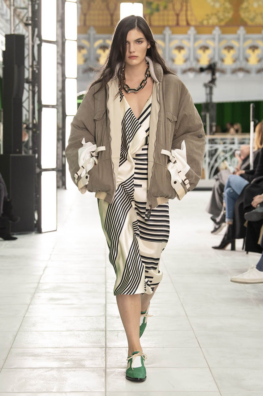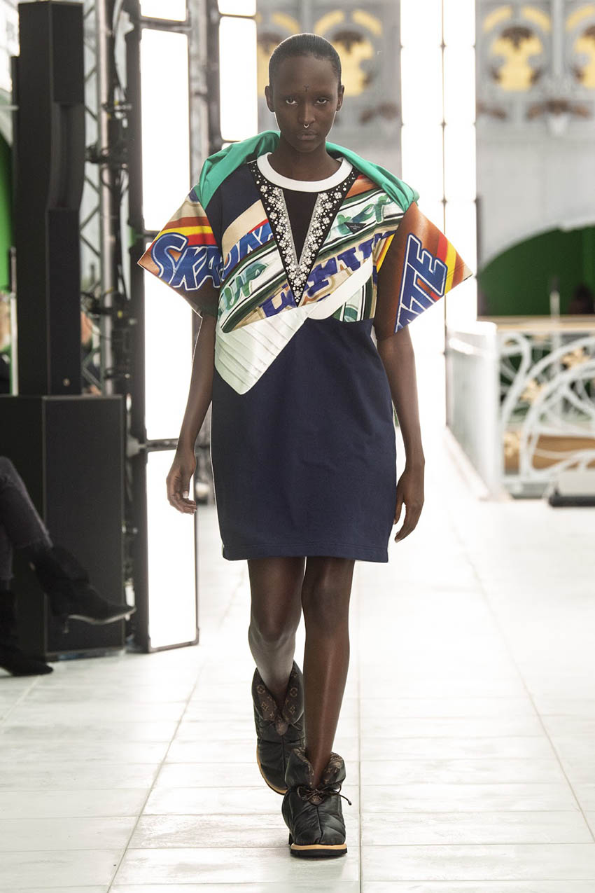 สำหรับโชว์ในครั้งนี้จัดในรูปแบบ ‘Phygital’ ผสมผสานการจัดโชว์จริงแบบเรียลไทม์ เข้ากับลูกเล่นเทคโนโลยีต่างๆ โดยในซีซันนี้ทาง Louis Vuitton ได้ตัดสินใจย้ายจากพิพิธภัณฑ์ลูฟวร์ เหมือนหลายซีซันที่ผ่านมา และมาจัด ณ ห้างหรูระดับตำนาน La Samaritaine ที่บริษัทแม่ของแบรนด์ LVMH เป็นเจ้าของและกำลังจะเปิดใหม่อีกครั้งในปีหน้า หลังปิดมา 15 ปี โดยเพื่อรักษามาตรการความปลอดภัยช่วงโควิด-19 ทางแบรนด์ก็ได้จัดโชว์สองรอบ พร้อมแขกรอบละเพียง 200 คน ต่างจากครั้งก่อนๆ ที่เป็นหลักพัน ซึ่งองค์ประกอบของเทคโนโลยีก็ได้นำมาใช้จากการคลุมที่นั่งและฝาผนังของตัวอาคารด้วยกรีนสกรีน ซึ่งพอโชว์เริ่มเดิน คนทางบ้านก็จะเห็นกราฟิกขึ้นจอเต็มไปหมด แถมมีกล้องที่หมุนได้ 360 องศา เพื่อให้คนดูได้ดูภาพจากทุกมุม