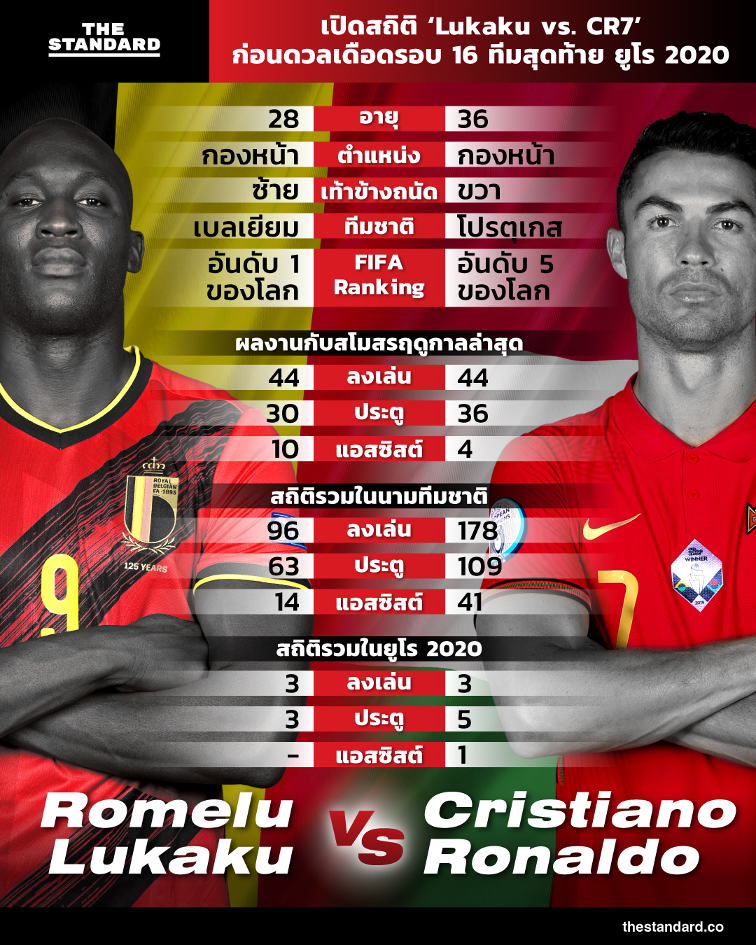 และเพื่อโหมโรงก่อนการแข่งขัน THE STANDARD รวบรวมข้อมูลสถิติของ 2 ผู้เล่นระดับ ‘Key Player’ ของแต่ละทีมมาให้ได้ชมกันว่า ทั้่ง โรเมลู ลูกากู และ คริสเตียโน โรนัลโด มีผลงานและสถิติของเป็นอย่างไรบ้าง