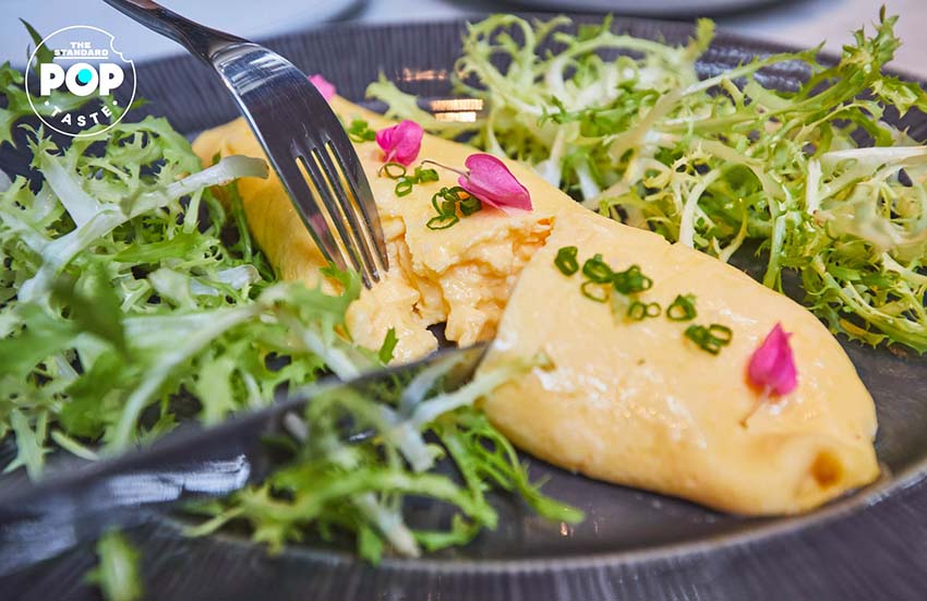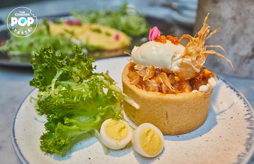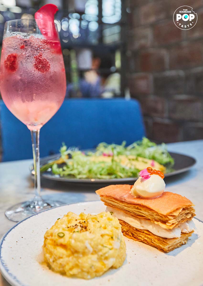 เดิมร้านแพลนจะเปิดในเดือนกรกฎาคม แต่เมื่อติดมาตรการล็อกดาวน์ทำให้ต้องจัดส่งแบบเดลิเวอรีก่อน และเริ่มเปิดจริงเป็นเมนูบรันช์หลังจากที่รัฐบาลปลดล็อกอนุญาตในรับประทานอาหารในร้านได้ในเดือนกันยายนที่ผ่านมา หลายคนที่ได้ติดตามร้านผ่านทางโซเชียลมีเดียจะคุ้นชินกับเมนูอาหารเช้า-บรันช์อย่าง Plain Omelette with Baby Greens (240 บาท) หรือออมเล็ตสไตล์ฝรั่งเศสเสริมกับผักใบอ่อน หรือ Smoked Salmon Mille-Feuille (345 บาท) จานนี้เป็นตัวอย่างแรกที่เชฟมู่เกริ่นให้เราฟัง เธอดัดแปลงนำแป้งมีลย์เฟยขนมฝรั่งเศสมาจัดเลเยอร์สอดไส้ด้วยมูสแซลมอนรมควัน ท็อปด้านบนด้วยแซลมอนรมควัน Crème Fraîche ที่ทางร้านทำเอง ไข่ปลาแซลมอน และเสิร์ฟเคียงด้วยไข่คน