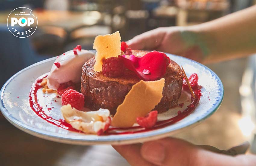 อีกอย่างหนึ่งที่เราว่าไม่ควรพลาดที่นี่คือเฟรนช์โทสต์ต่างๆ ของทางร้าน เพราะขนมปังบริยอชที่ทางร้านทำเองแทบจะเป็นหนึ่งในขนมขึ้นชื่อของเชฟมู่ และเมื่อนำมาทำเฟรนช์โทสต์แล้ว เชฟมู่ออกแบบตัวคัสตาร์ดรสชาติต่างๆ ตั้งแต่ก่อนทอดให้เข้ากันกับแต่ละสูตรด้วย อย่างเช่น Ispahan Brioche French Toast (295 บาท) ที่ขนมปังบริยอชถูกนำไปชุบในคัสตาร์ดกุหลาบก่อนทอด เสิร์ฟกับซอส Raspberry Coulis ครีม Chantilly รสกุหลาบ ลิ้นจี่ และอัลมอนด์ครัมเบิล