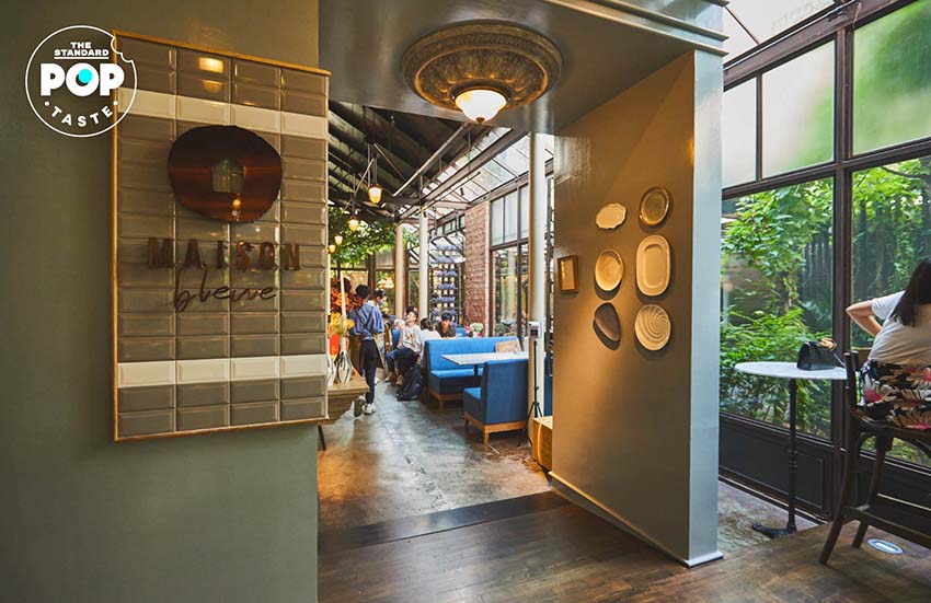 บ้านกระจกพร้อมสวนใจกลางสุขุมวิท 24 แห่งนี้ เคยเป็นร้านอาหาร Karmakamet Diner มาก่อน หลังจากที่ย้ายโลเคชันไปอยู่ที่สุขุมวิทซอย 49 โซนที่เป็นห้องอาหารของบ้านหลังนี้ถูกชุบชีวิตขึ้นใหม่กลายเป็น All Day Dining Spot ที่ใช่ชื่อว่า Maison Bleue นี้เอง