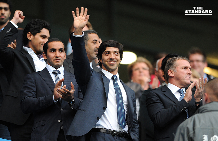 ชีค มานซูร์ บิน ซาเยด อัล นาห์ยาน (กลางภาพ) เจ้าของสโมสรแมนเชสเตอร์ ซิตี้