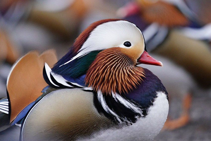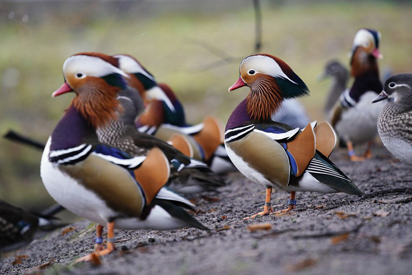 เป็ดแมนดารินสีสันสวยงามสะดุดสายตาภายในสวนสาธารณะรอยัล บาธส์ กรุงวอร์ซอ เมืองหลวงของโปแลนด์