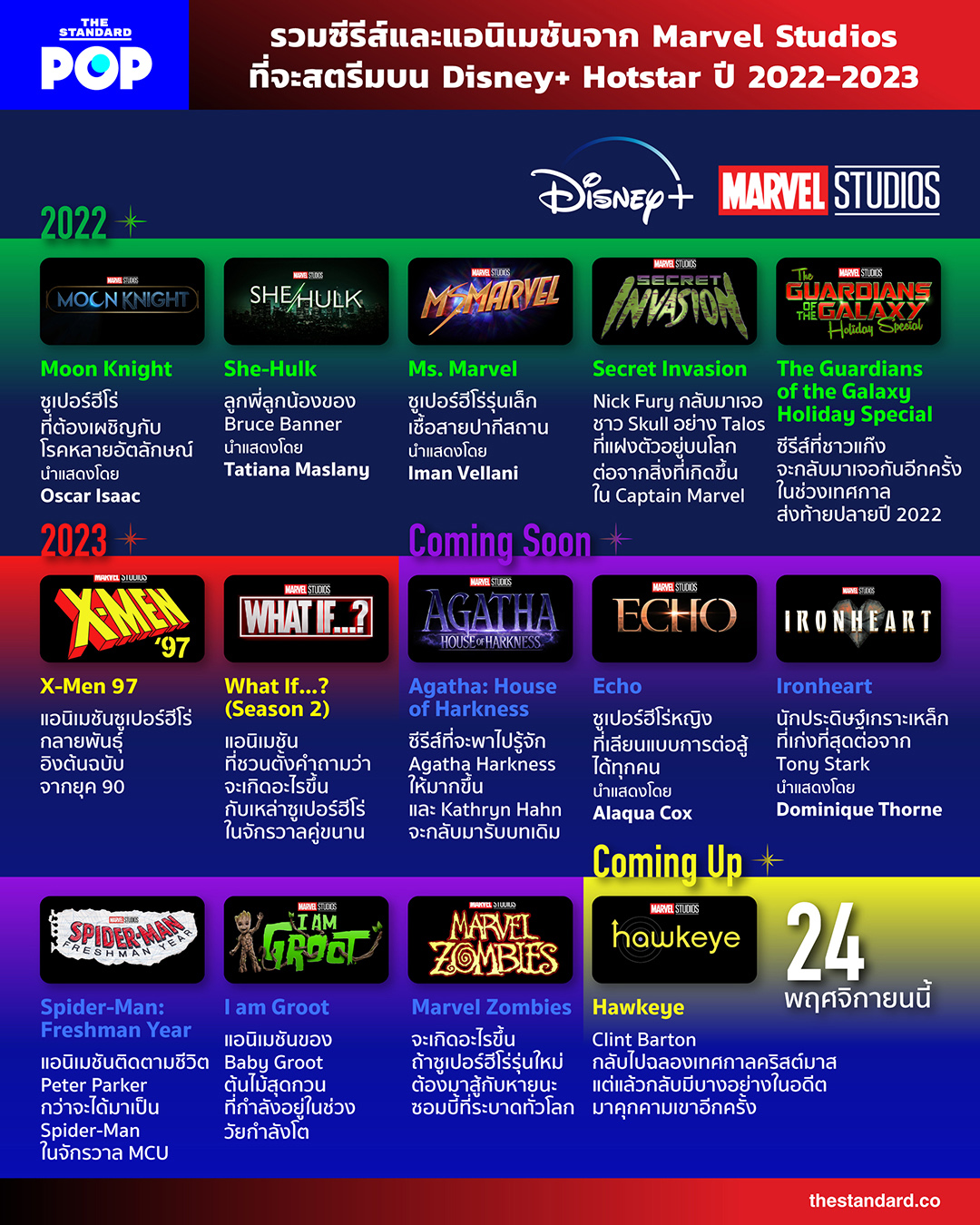 THE STANDARD POP ได้รวมรวมซีรีส์และแอนิเมชันทั้งหมด และโปรเจกต์ในอนาคตของค่าย Marvel Studios ให้แฟนๆ ซูเปอร์ฮีโร่ได้ตั้งตารอ
