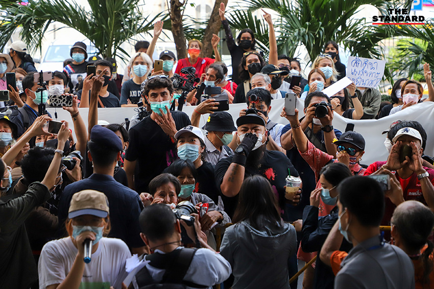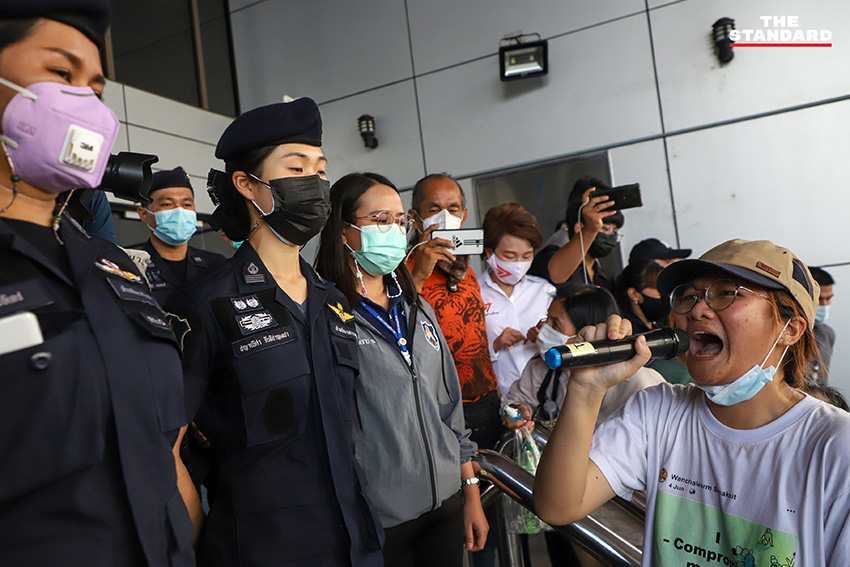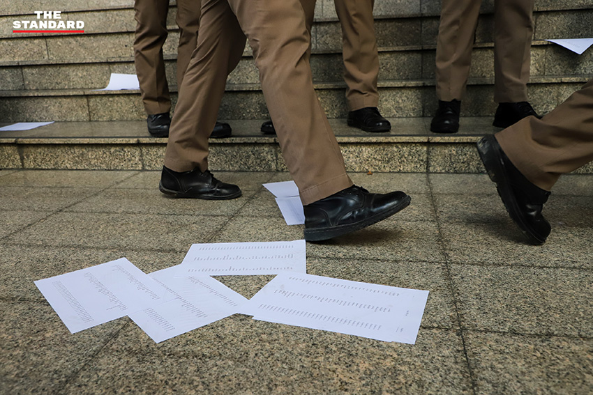 ขณะที่เบญจาได้นำเครื่องขยายเสียงมาประกาศบริเวณบันไดทางขึ้นศาลอาญา เรียกร้องให้ชนาธิปเดินทางมารับเอกสารทั้งหมด โดยเจ้าหน้าที่รักษาความปลอดภัยเข้ามาดูแลความเรียบร้อย ก่อนจะโปรยกระดาษรายชื่อจนเต็มบริเวณ