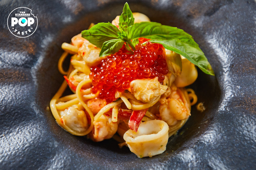 เช่นเดียวกับ Another Hound ที่นี่ก็ยังมีจานหลักให้เลือกหลากหลาย ทั้งเบอร์เกอร์ สปาเก็ตตี หรือจานเนื้อไปเลย เพียงแต่เมนูกะทัดรัดกว่า เป็นเมนูที่เลือกมาแล้วให้เหมาะกับสถานที่ด้วย สำหรับจานเส้นเราเลือก Maha-samud Cha Cha Cha (600 บาท) จานพาสต้าที่เลือกใช้เส้นลิงกวิเน ผัดกับเครื่องผัดฉ่าแบบไทยๆ และท็อปด้วยซีฟู้ดหลากหลาย ทั้งเนื้อปู ปลาหมึก กุ้ง และอิคุระ