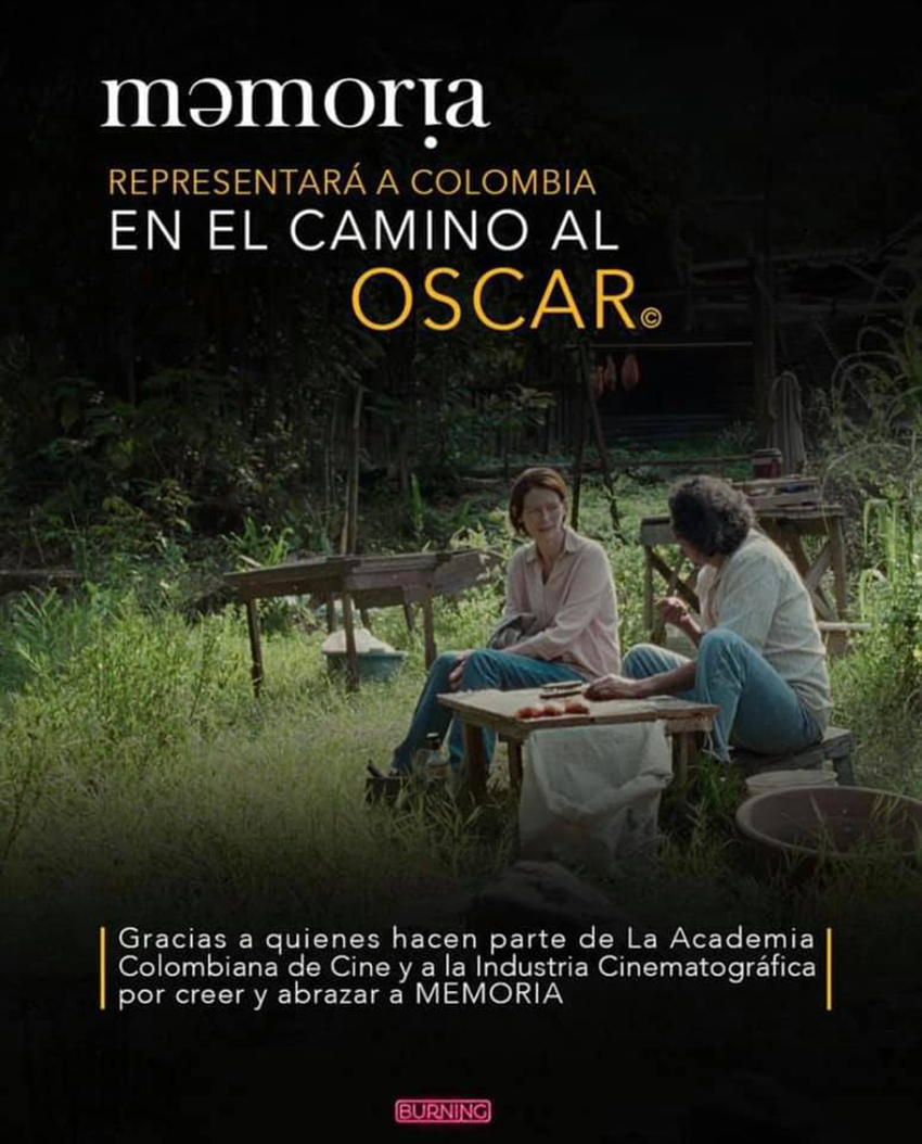 ไปกันต่อ! Memoria ผลงานภาพยนตร์เรื่องล่าสุดของ เจ้ย-อภิชาติพงศ์ วีระเศรษฐกุล ที่ได้นักแสดงระดับฮอลลีวูดอย่าง Tilda Swinton มารับบทนำ ได้รับเลือกให้เป็นตัวแทนจากประเทศโคลอมเบีย เพื่อเข้าชิงรางวัลออสการ์ 2022 ในสาขาภาพยนตร์ภาษาต่างประเทศยอดเยี่ยม