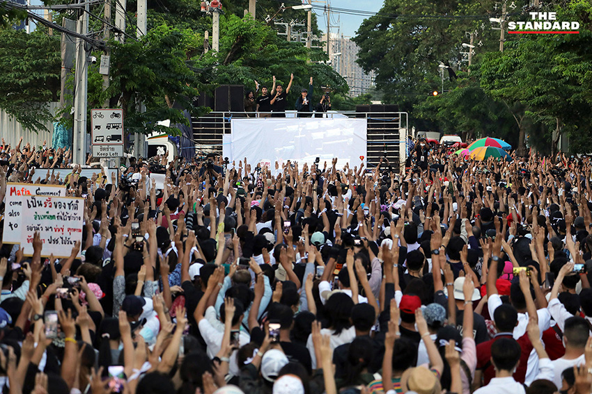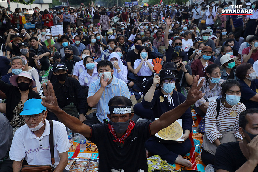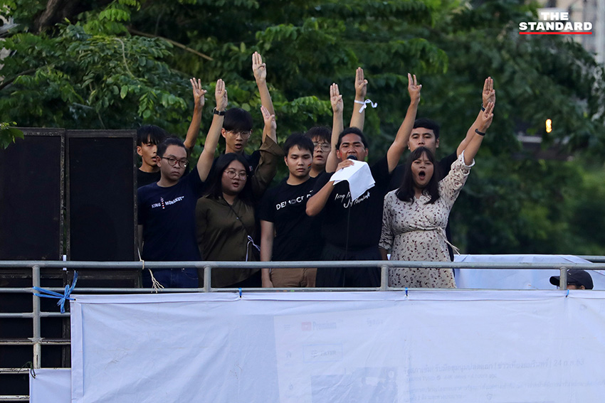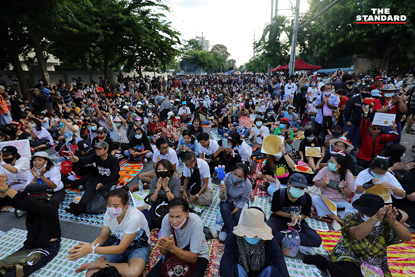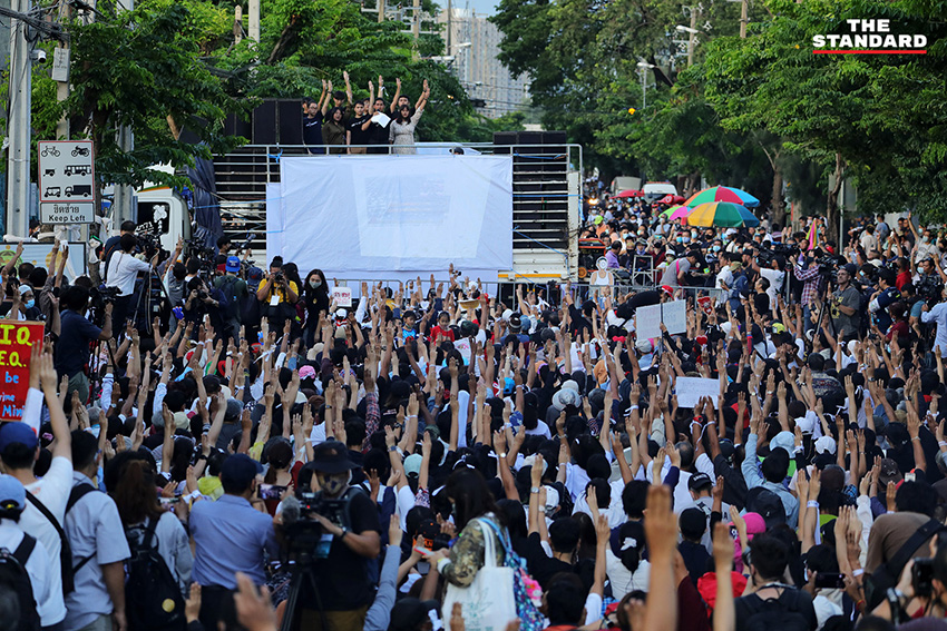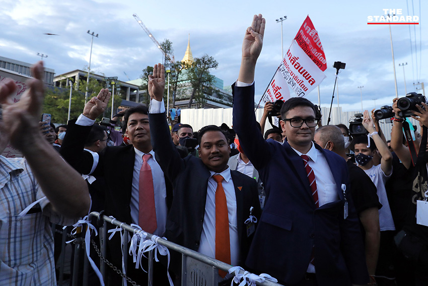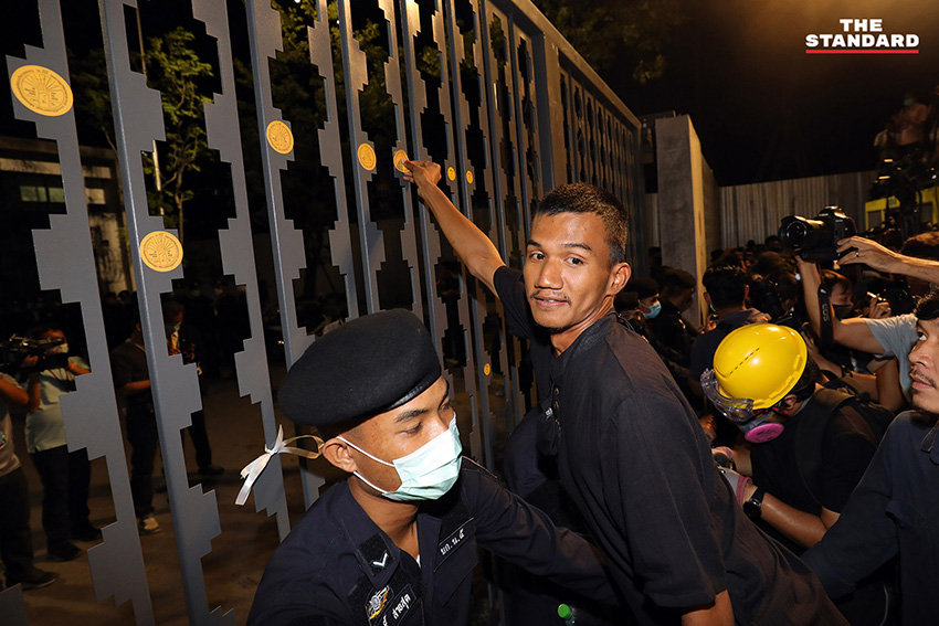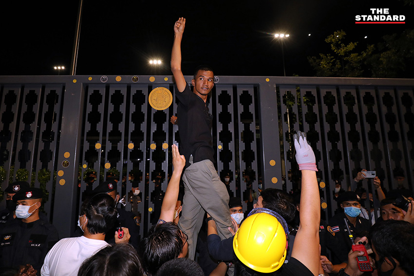 บรรยากาศในช่วงหนึ่ง ไมค์ ระยอง หรือ ภาณุพงศ์ จาดนอก ได้ขึ้นไปยืนบนแผงเหล็ก และนำสติกเกอร์หมุดคณะราษฎรไปติดตรงประตูรั้วของรัฐสภา โดยที่เจ้าหน้าที่ได้ดึงประตูรั้วปิดทั้งสองข้างแล้ว ในขณะที่ช่วงเย็นยังคงเปิดให้รถออก แต่ในส่วนทางเข้านั้นได้ปิดตั้งแต่ช่วงบ่าย