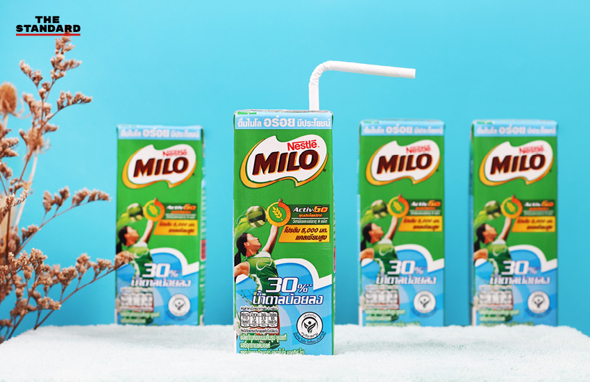 ‘น้ำตาล’ หนึ่งในส่วนผสมของไมโล เป็นสิ่งที่ทีมนักวิจัยของ Nestlé Research Center ให้ความสำคัญอย่างมาก ประการแรก ปริมาณน้ำตาลในโมโลต้องเป็นไปตามมาตรฐานโภชนาการของเนสท์เล่ ซึ่งสอดคล้องกับมาตรฐานสากล ประการต่อมา ไมโลยังพัฒนาผลิตภัณฑ์สำหรับกลุ่มผู้บริโภคที่รักสุขภาพอย่างต่อเนื่อง จาก ‘ไมโลสูตรปกติ’ ที่มีปริมาณน้ำตาลตามมาตรฐานสากลอย่างที่บอกไป ไมโลก็ได้มีการปรับสูตรเพิ่ม 2 สูตร ได้แก่ ‘ไมโลสูตรไม่มีน้ำตาลทราย’ ซึ่งยังคงคงความอร่อยเหมือนเดิม เพิ่มเติมคือถูกใจคนชอบไม่หวาน เพราะได้ความหวานจากน้ำตาลธรรมชาติของนม 8 กรัม และน้ำตาลธรรมชาติมอลโตสจากมอลต์ 3 กรัม ส่วนอีกสูตรคือ ‘ไมโลสูตรน้ำตาลน้อยกว่า’ เป็นอีกทางเลือกให้กับคนรักสุขภาพที่มองหาเครื่องดื่มช็อกโกแลตมอลต์เติมพลังระหว่างวัน หรือคุณแม่ที่ต้องการเครื่องดื่มที่มีประโยชน์ให้กับลูก แม้จะหวานน้อยกว่าเดิมแต่ยังคงความอร่อยกลมกล่อมเอกลักษณ์เฉพาะของไมโล