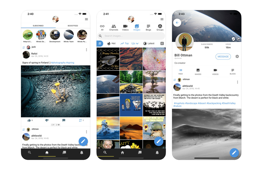 Minds นิยามตัวเองว่าเป็นโซเชียลมีเดียคริปโตแบบไม่รวมศูนย์ (Decentralized) ก่อตั้งขึ้นมาในปี 2011 โดย บิล ออตแมน ที่ตอนนี้เป็นซีอีโอร่วมกับเพื่อนอีก 3 คน ก่อนจะเริ่มให้บริการในปี 2015